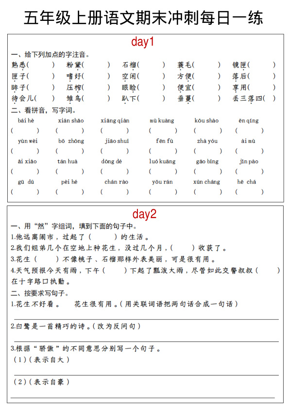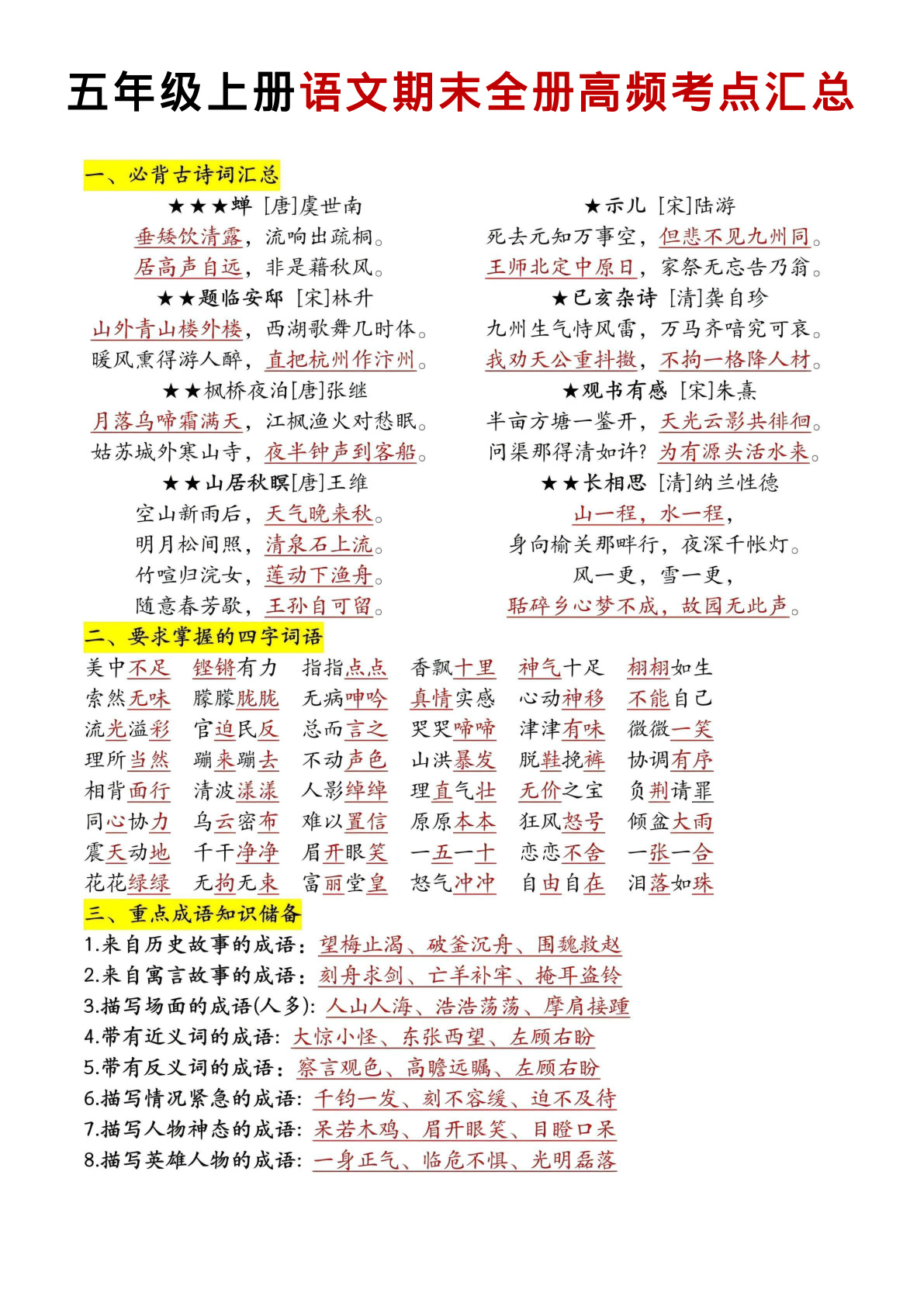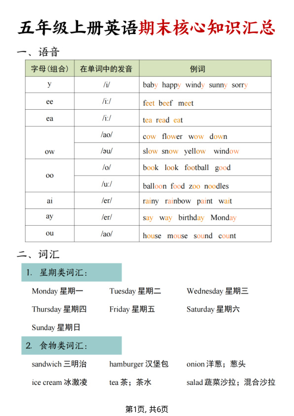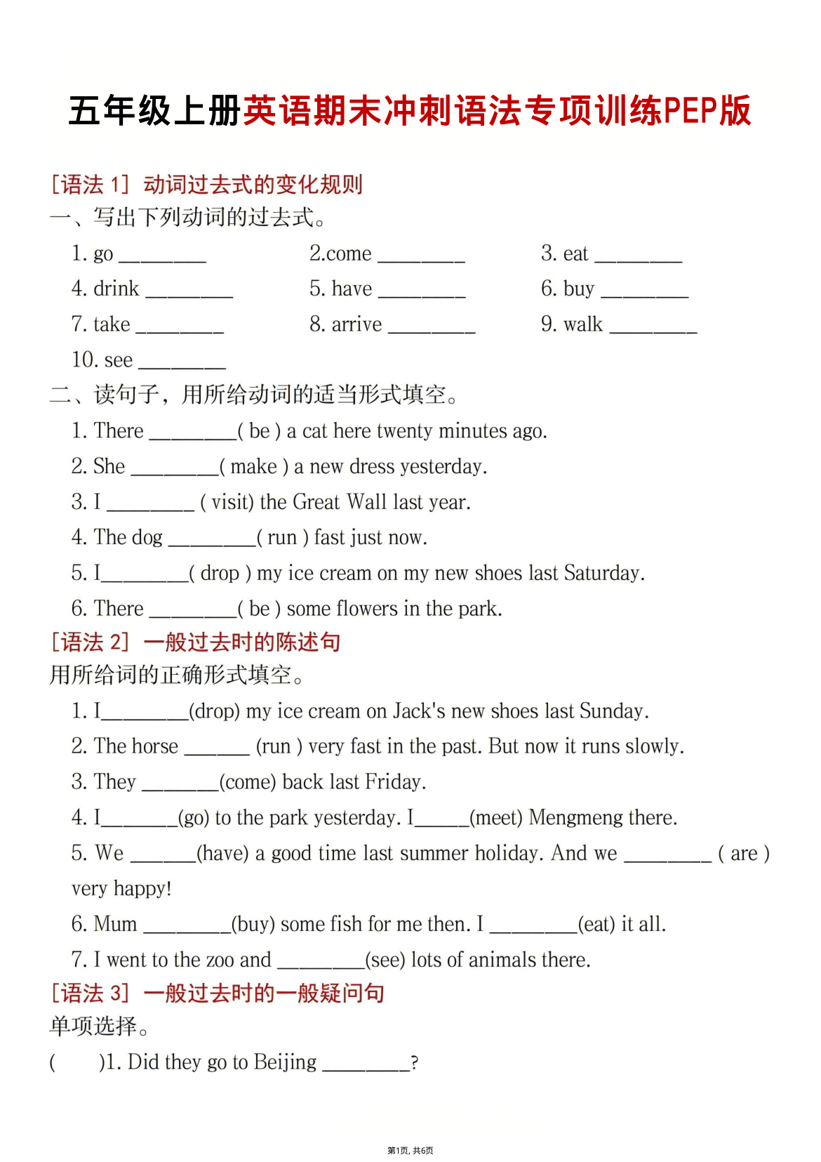 五年级(上)英语期末冲刺专项训练《PEP版》