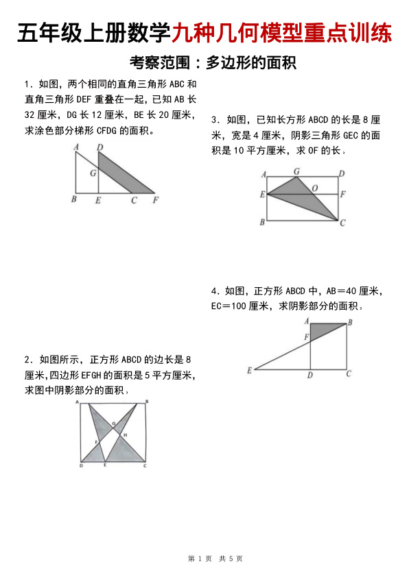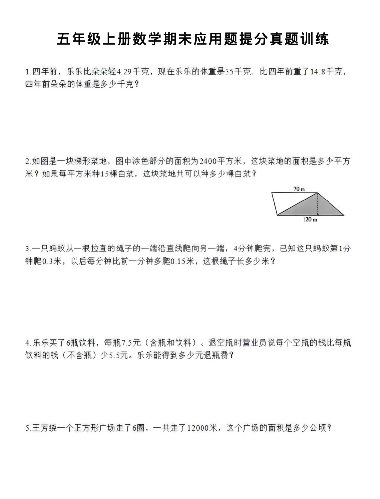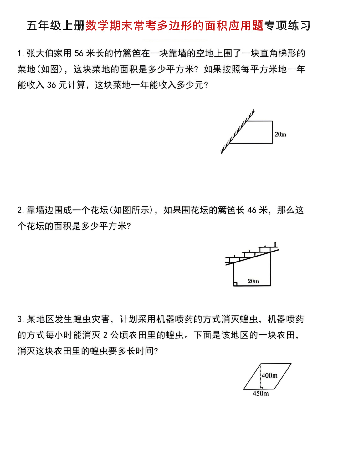 五年级(上)数学期末常考多边形的面积应用题专项练习