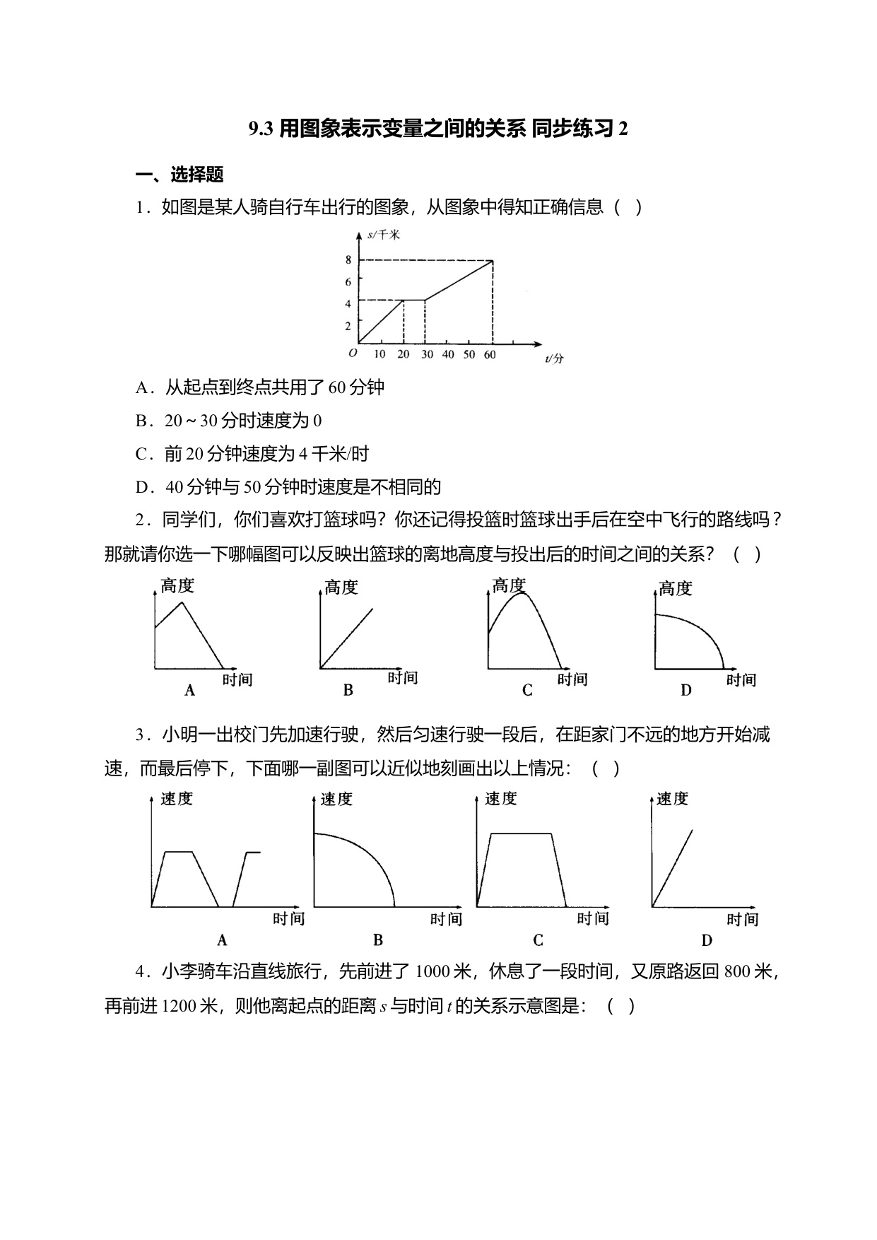 练习-9.3 用图象表示变量之间的关系 同步练习2