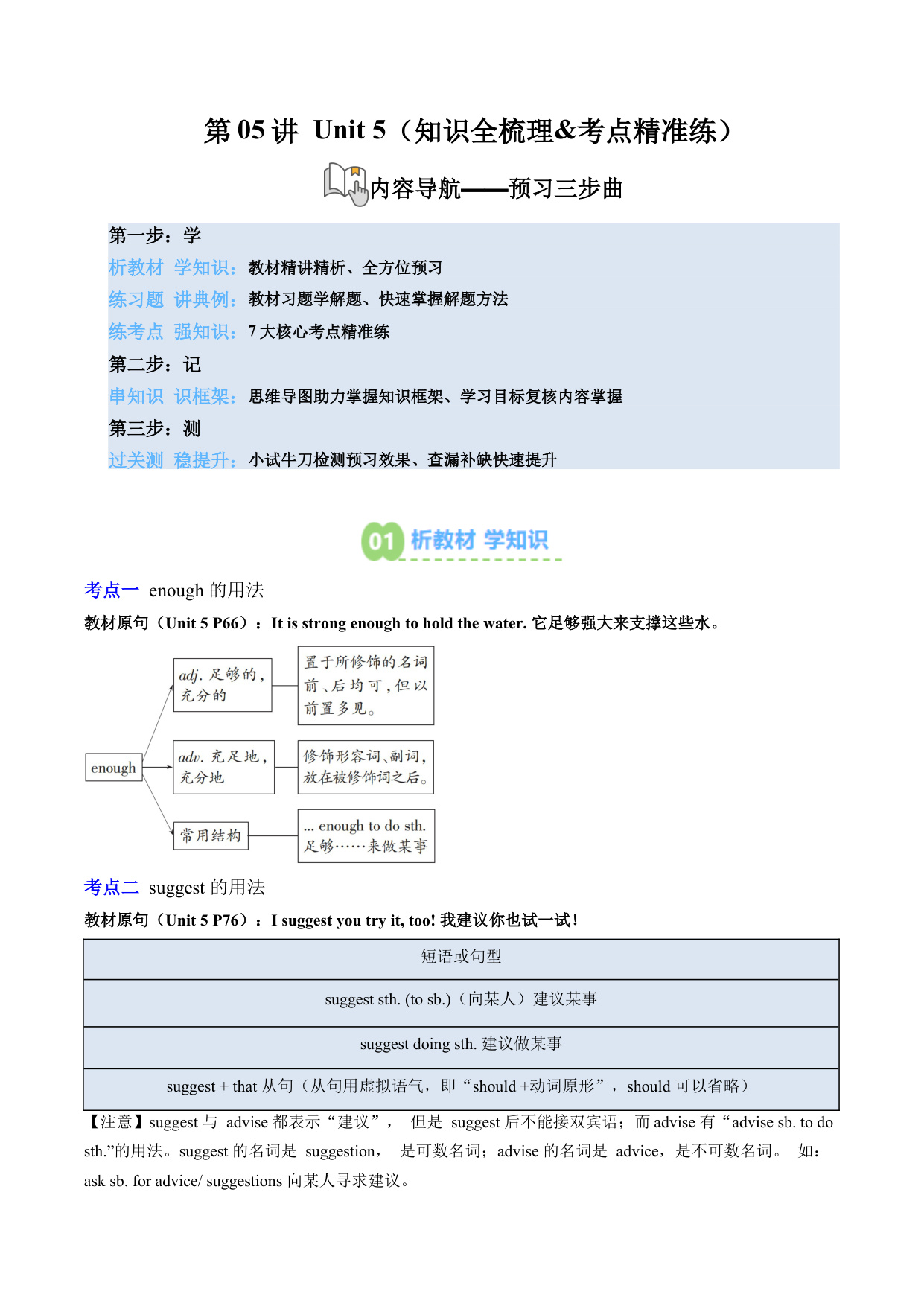 第05讲 Unit 5(知识全梳理&考点精准练)(解析版)