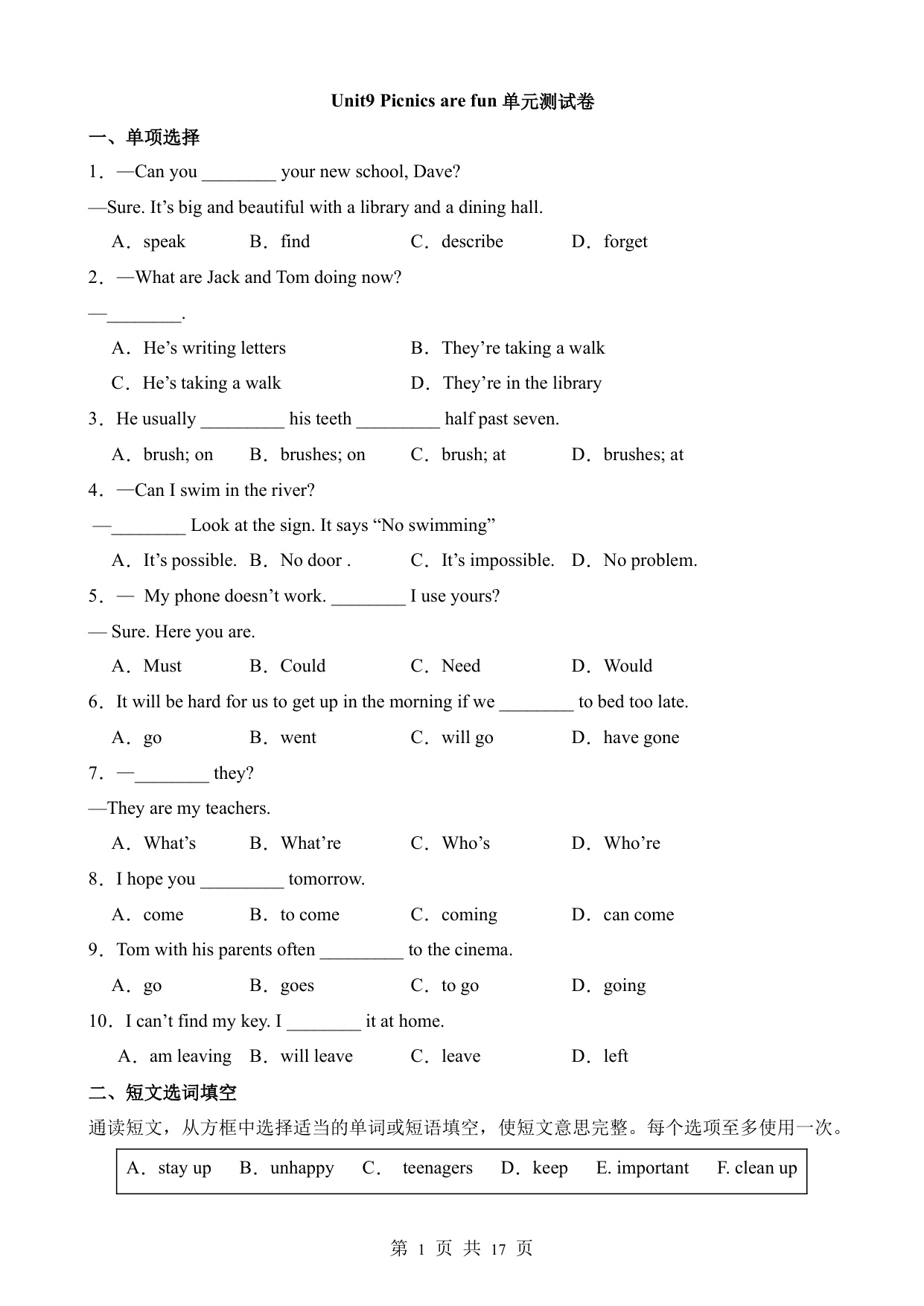 Unit 2 测试卷2