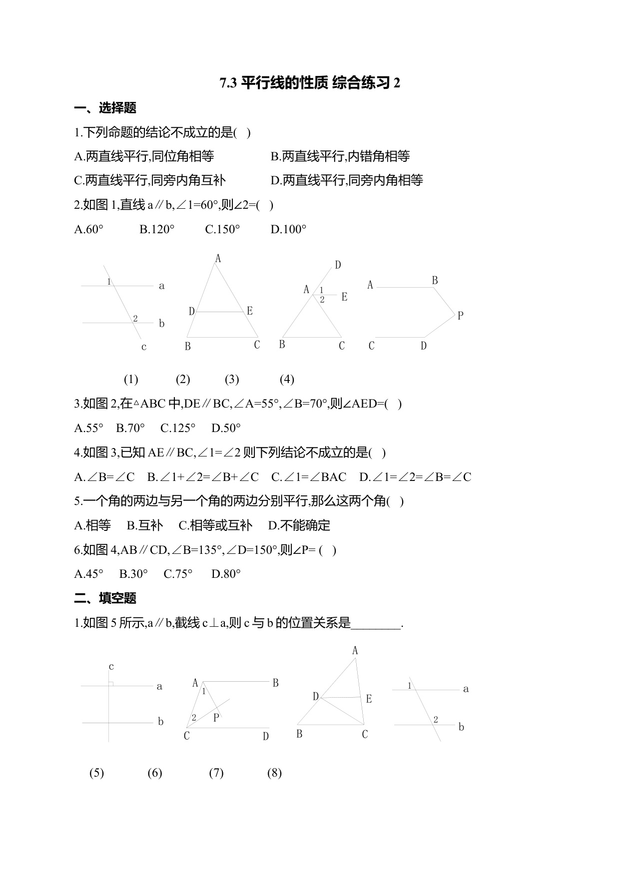 练习-7.3 平行线的性质 综合练习2