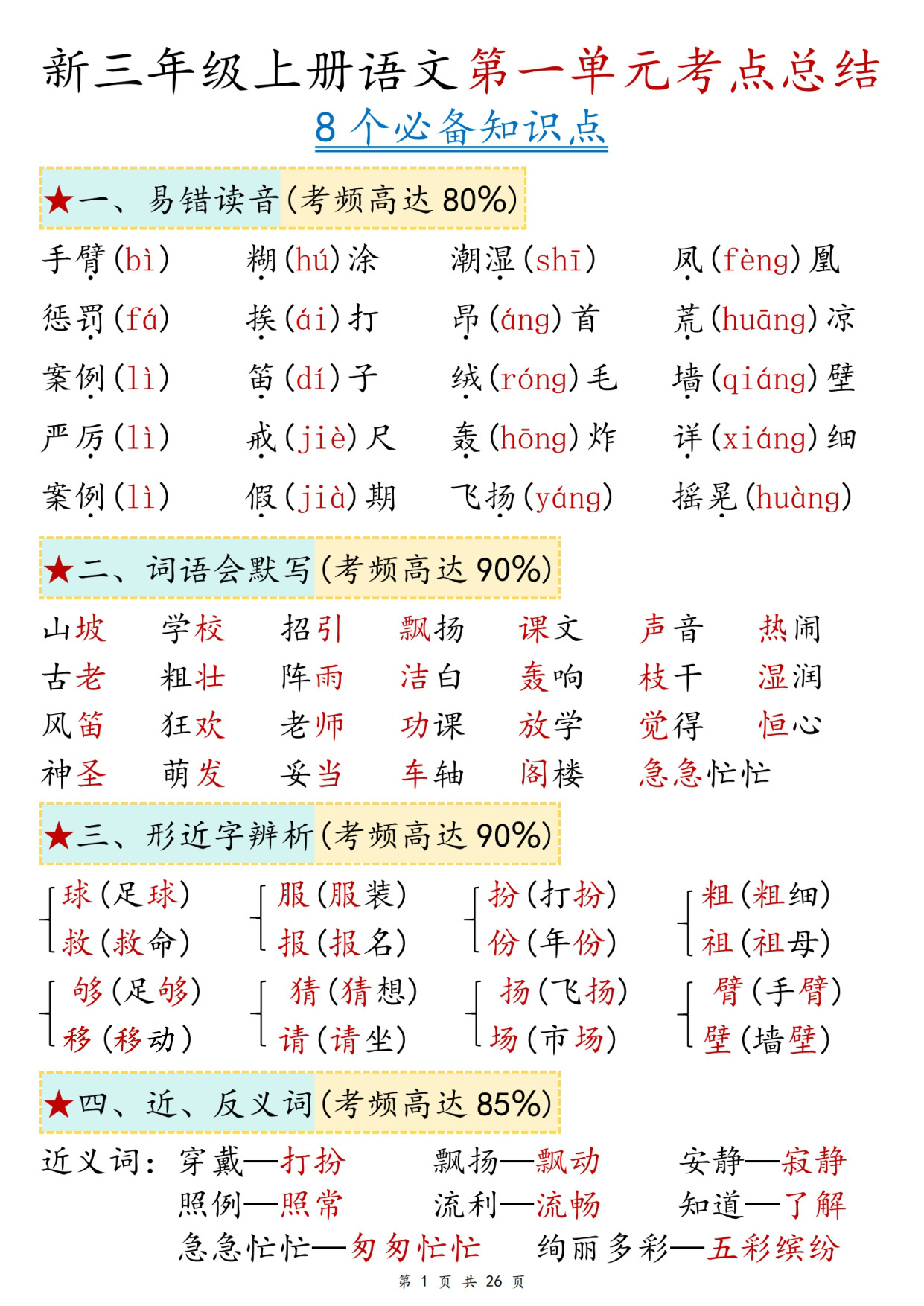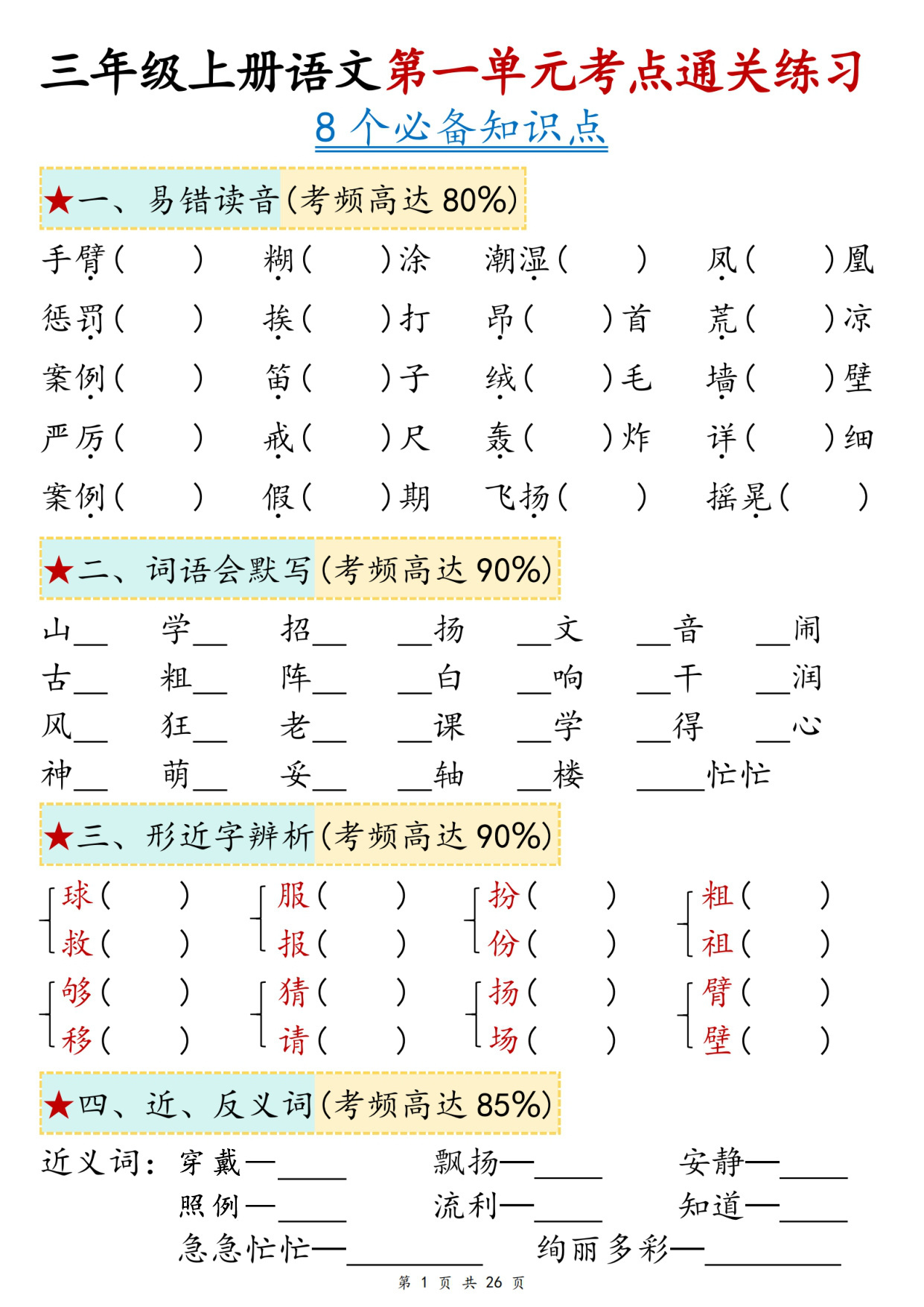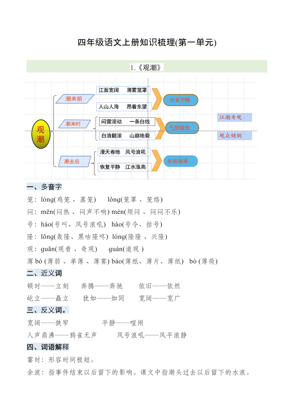第一单元重难点检测卷(试题)-部编版语文四年级上册