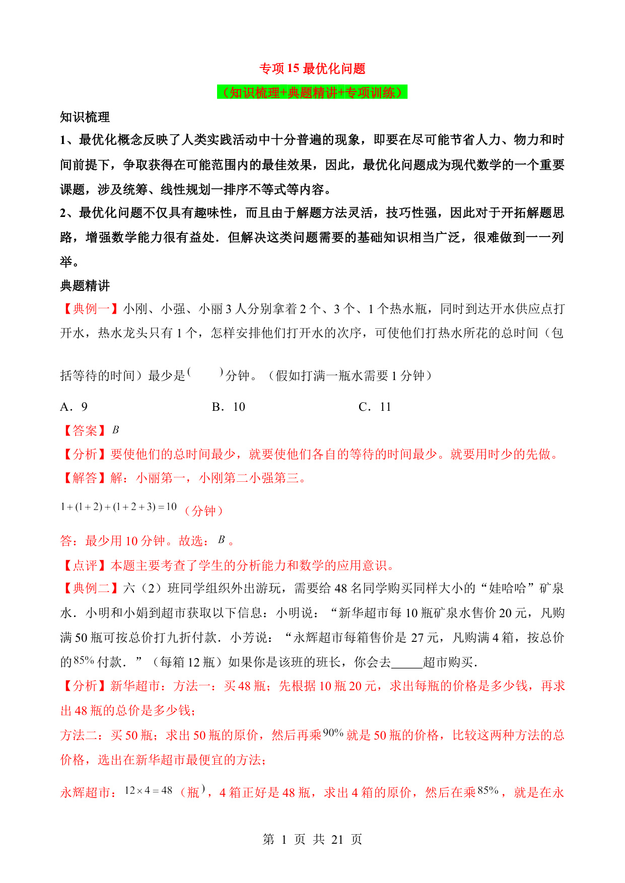 专项15 最优化问题
