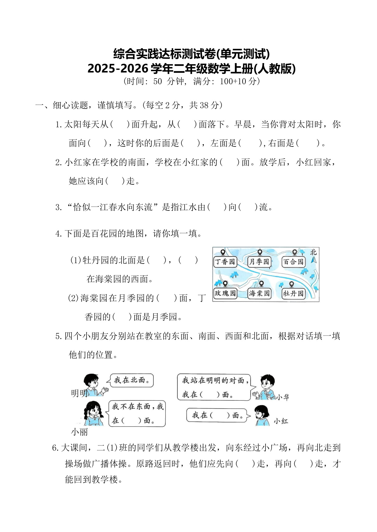 【A4考试版】数学(基础卷01)-2025-2026学年二年级数学上册期中素养测评卷(人教版·新教材)
