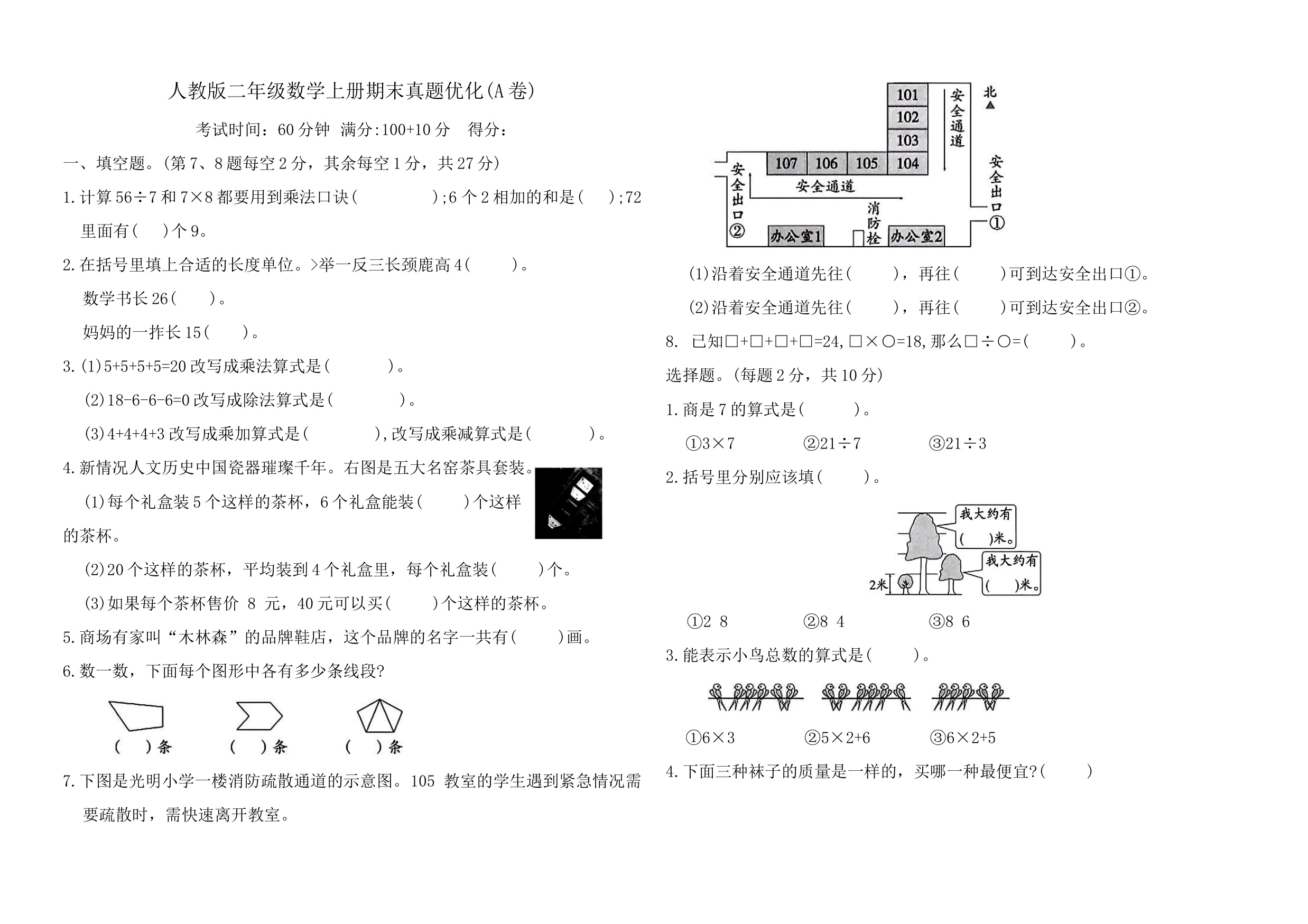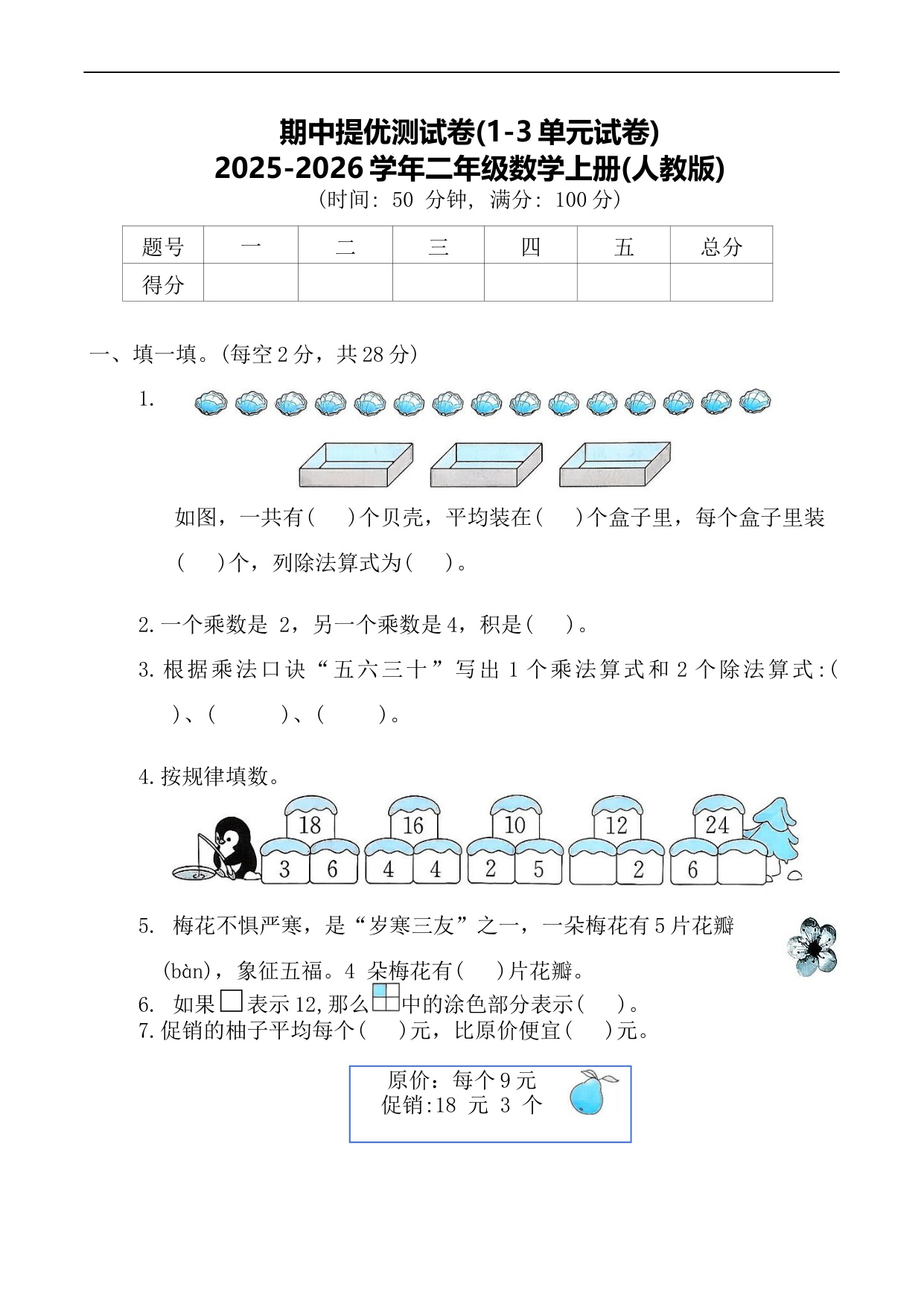 【A4考试版】数学(提高卷01)-2025-2026学年二年级数学上册期中素养测评卷(人教版·新教材)