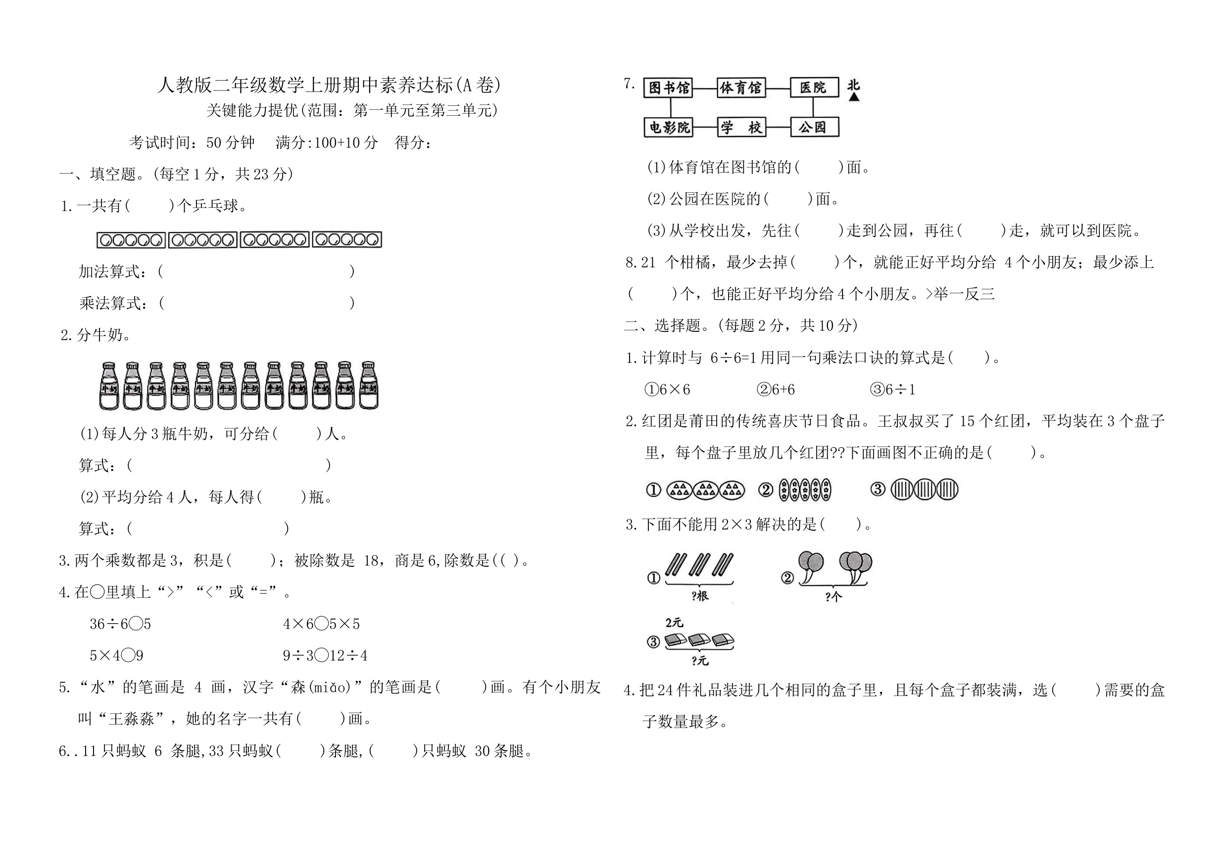 【A4考试版】数学(提高卷03)-2025-2026学年二年级数学上册期中素养测评卷(人教版·新教材)