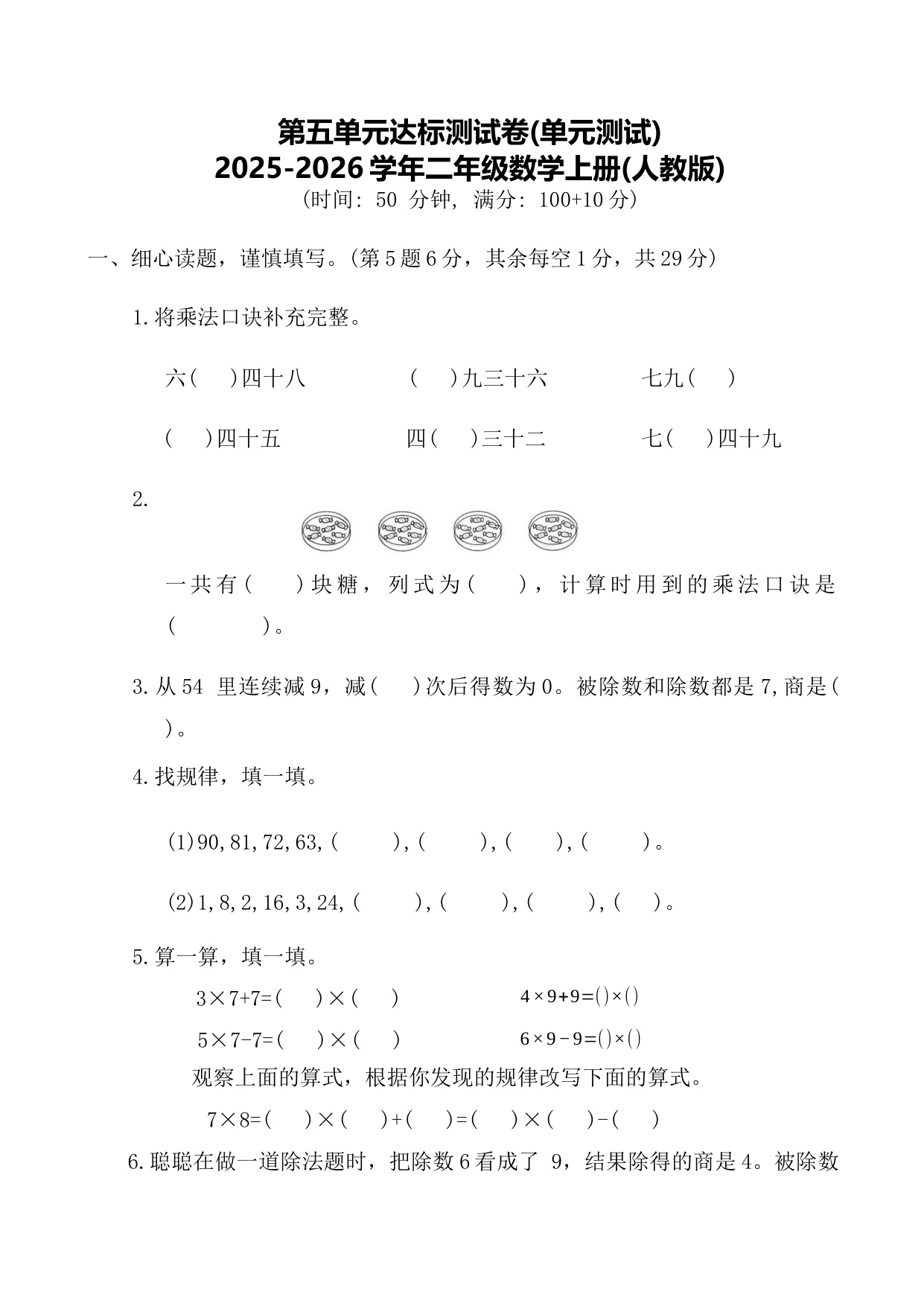 二年级(上)数学表内乘法综合小练笔-前5页