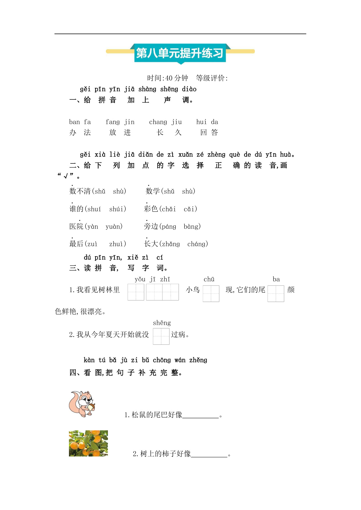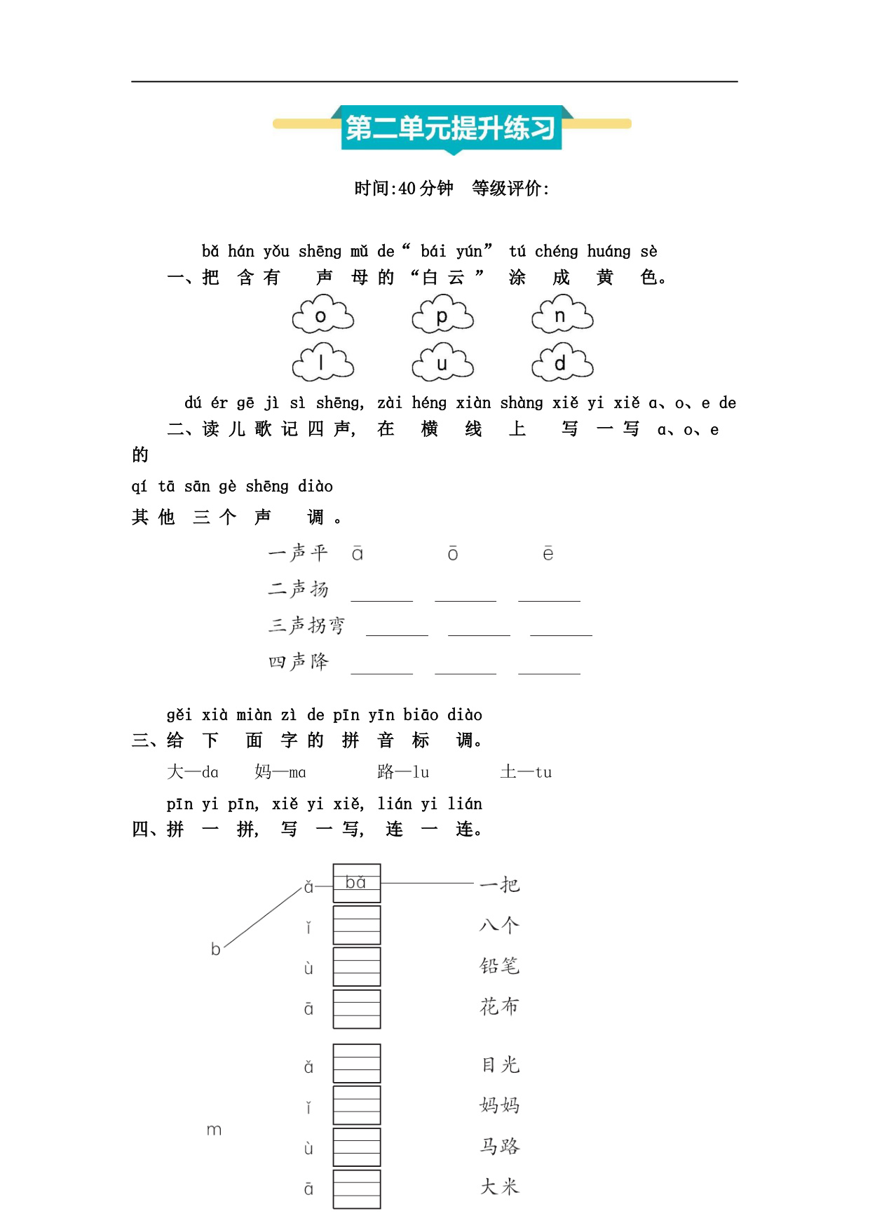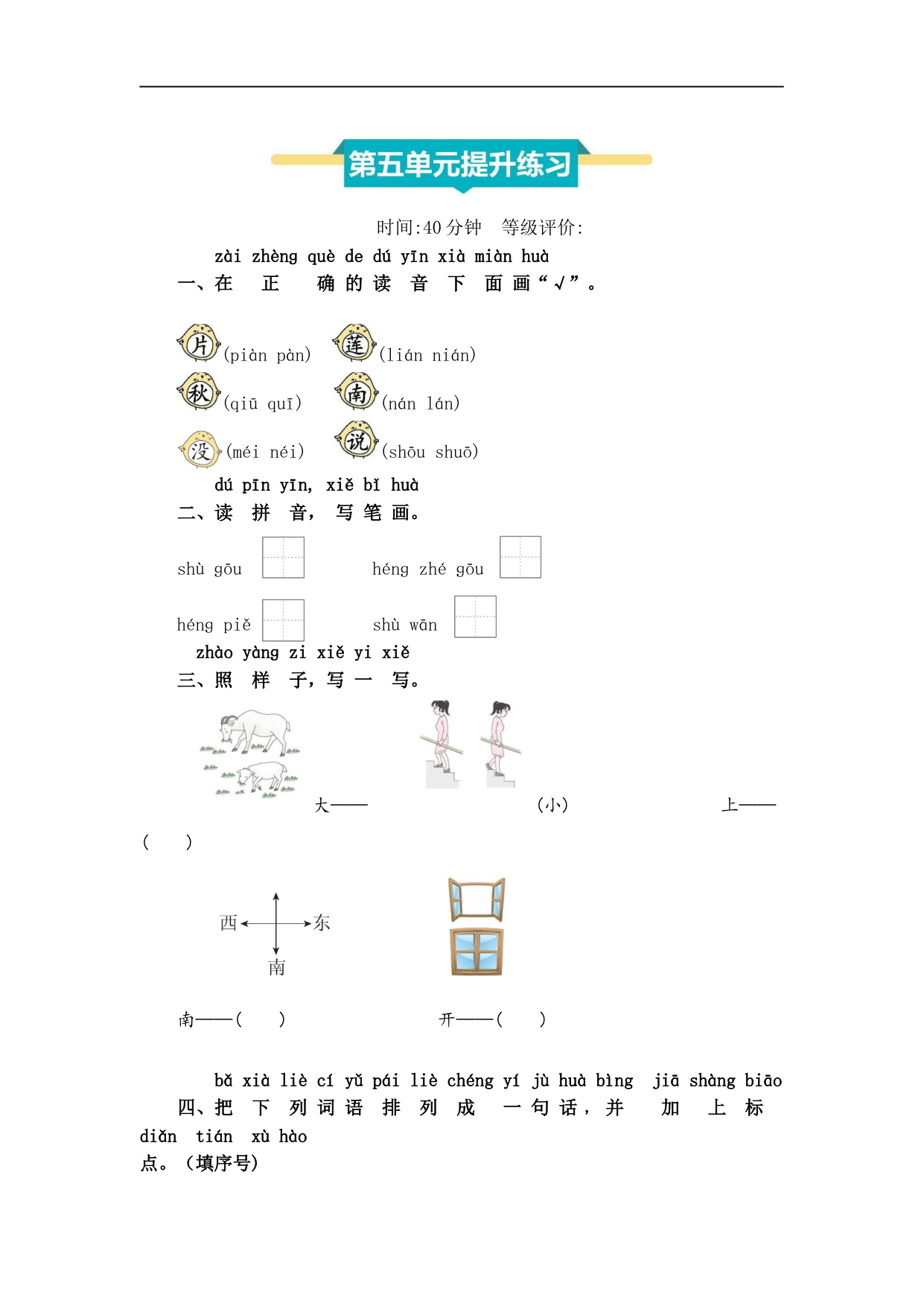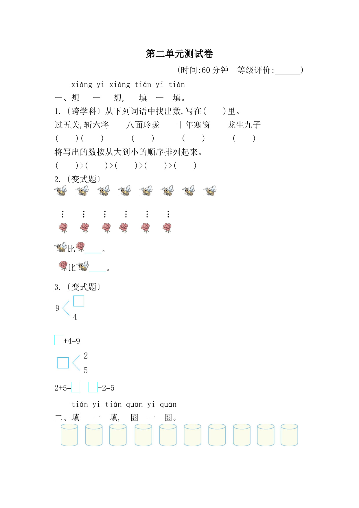 第二单元 6~10的认识和加、减法 测试卷(含答案)