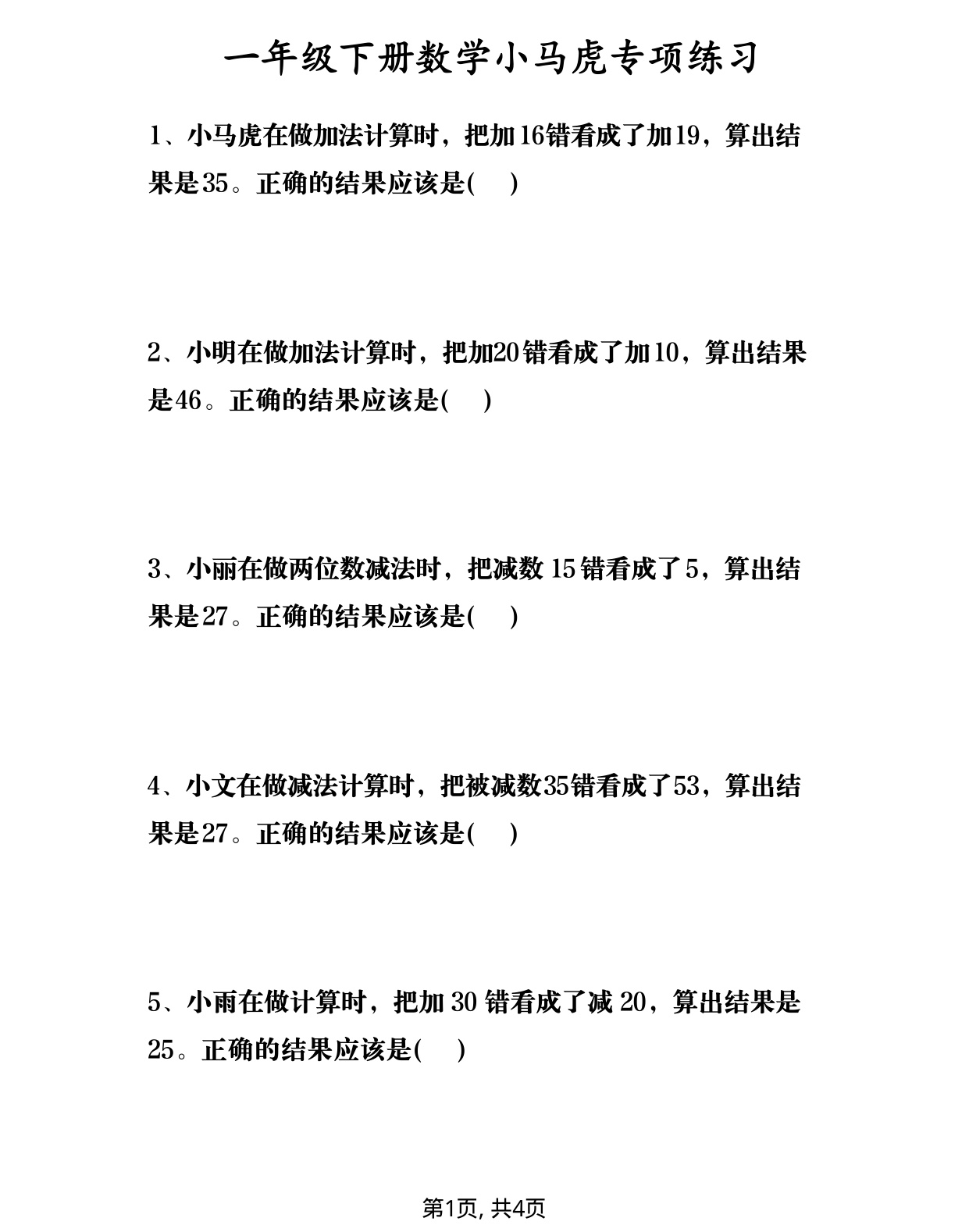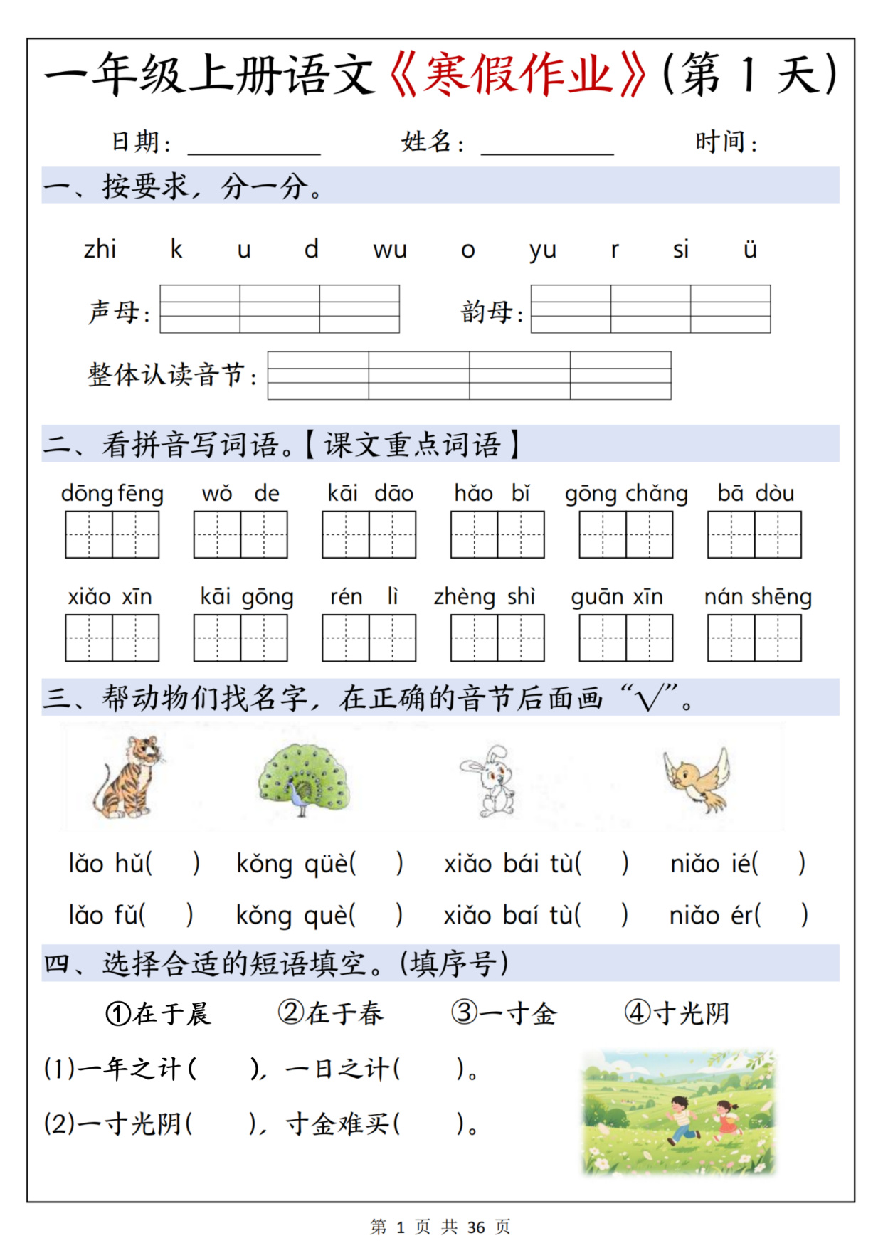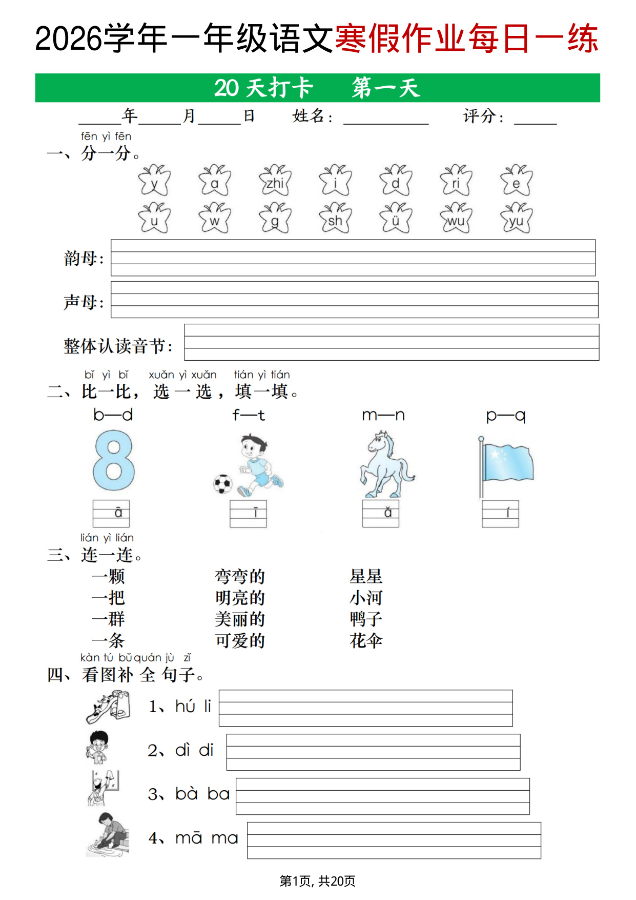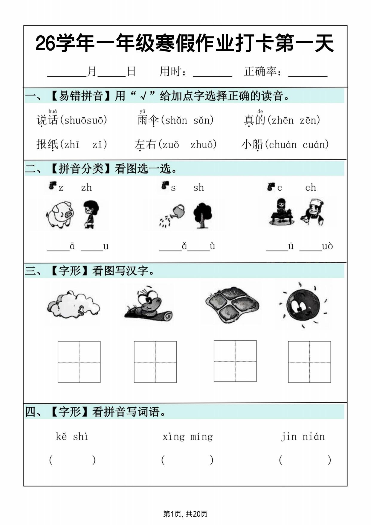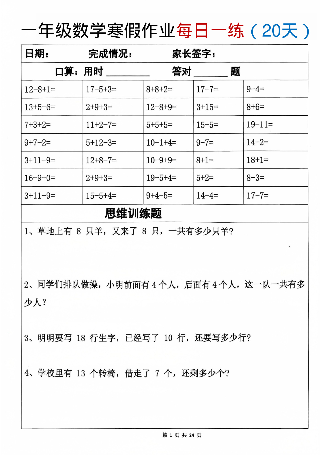 一年级(上)数学寒假作业每日一练30天打卡专项练习
