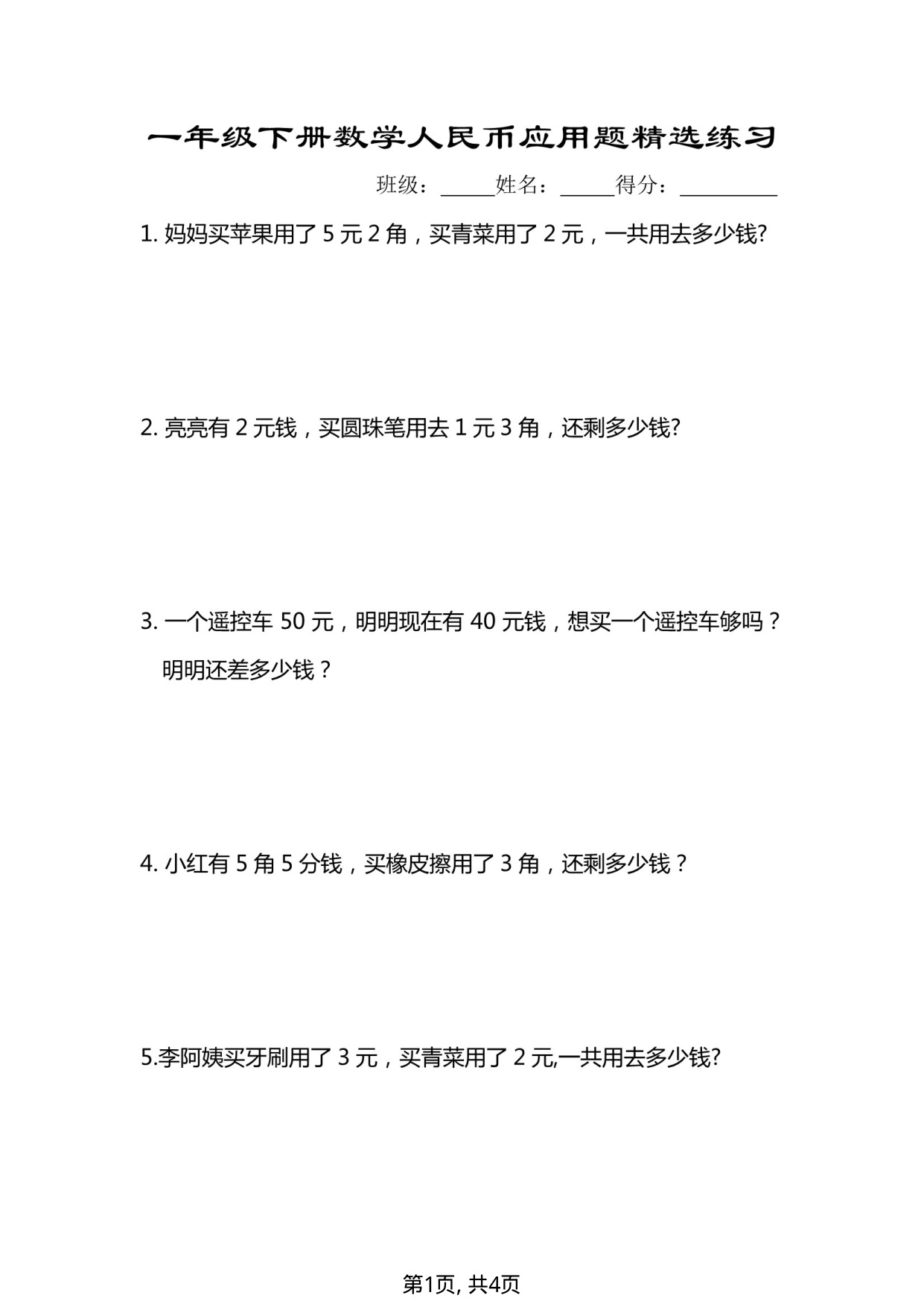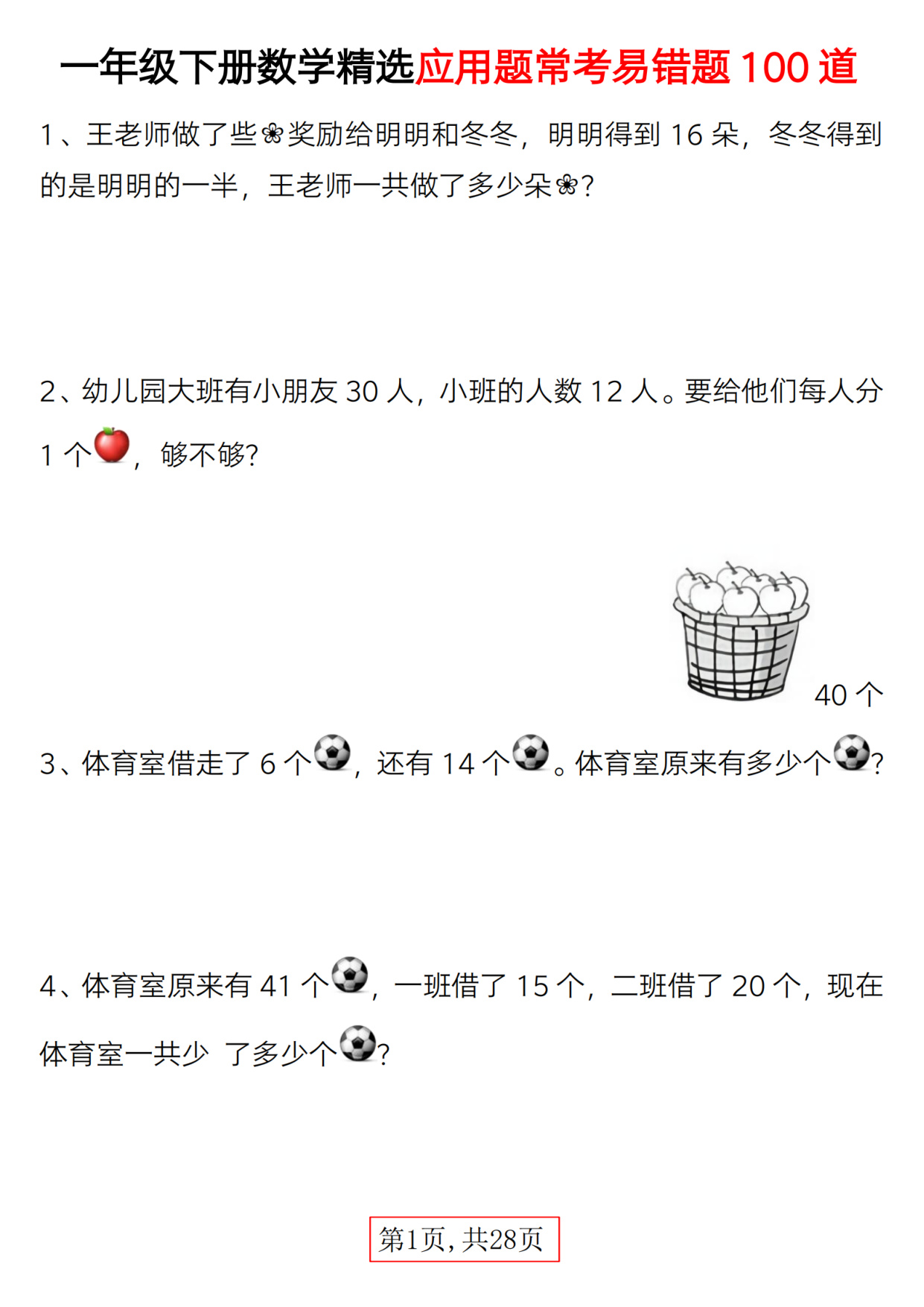 一年级(上)数学寒假作业《应用题每日一练》34页