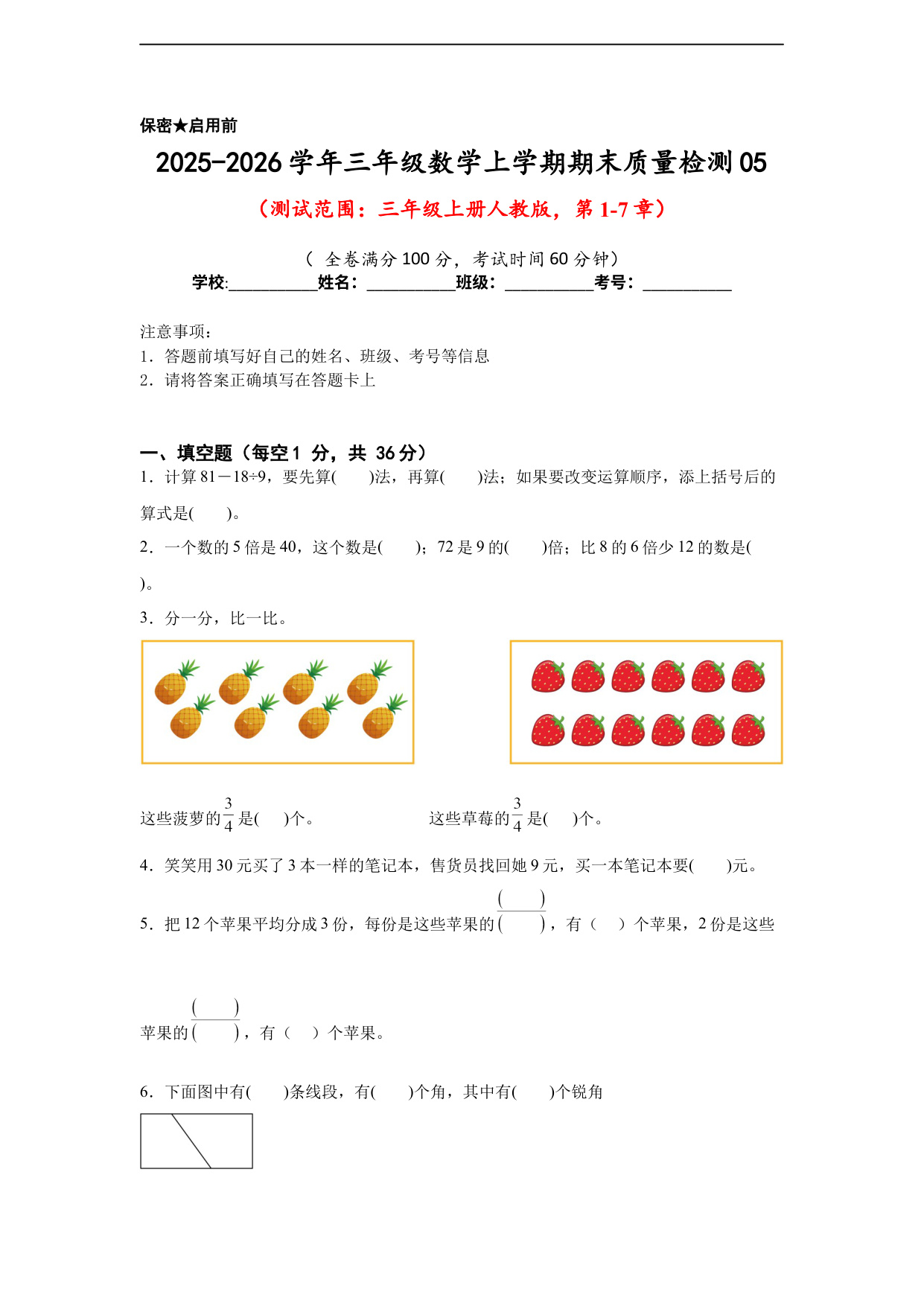 【新情境·新趋势】人教版数学·三年级上册期末情境卷试题(B)卷【A4版(试题卷)】