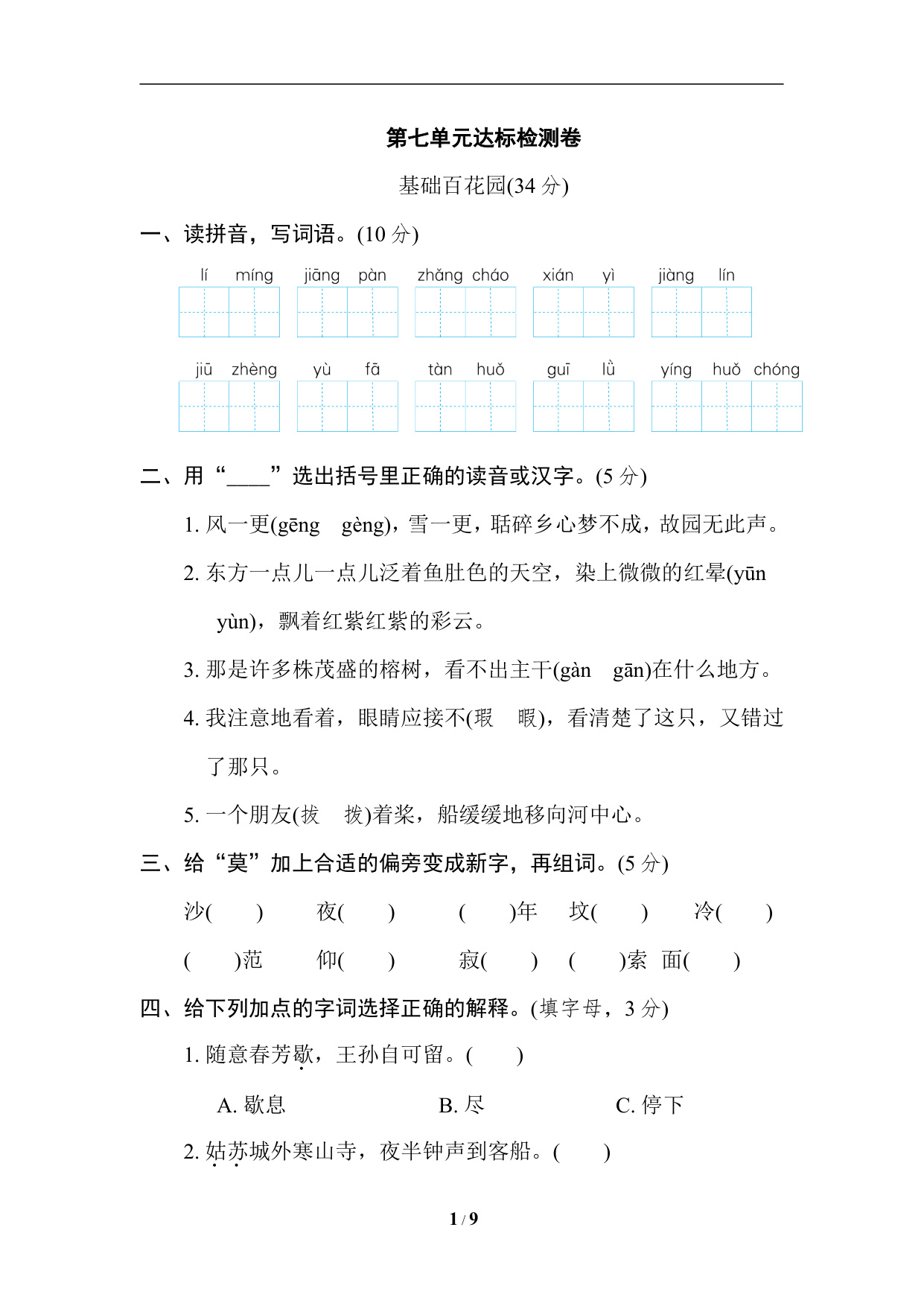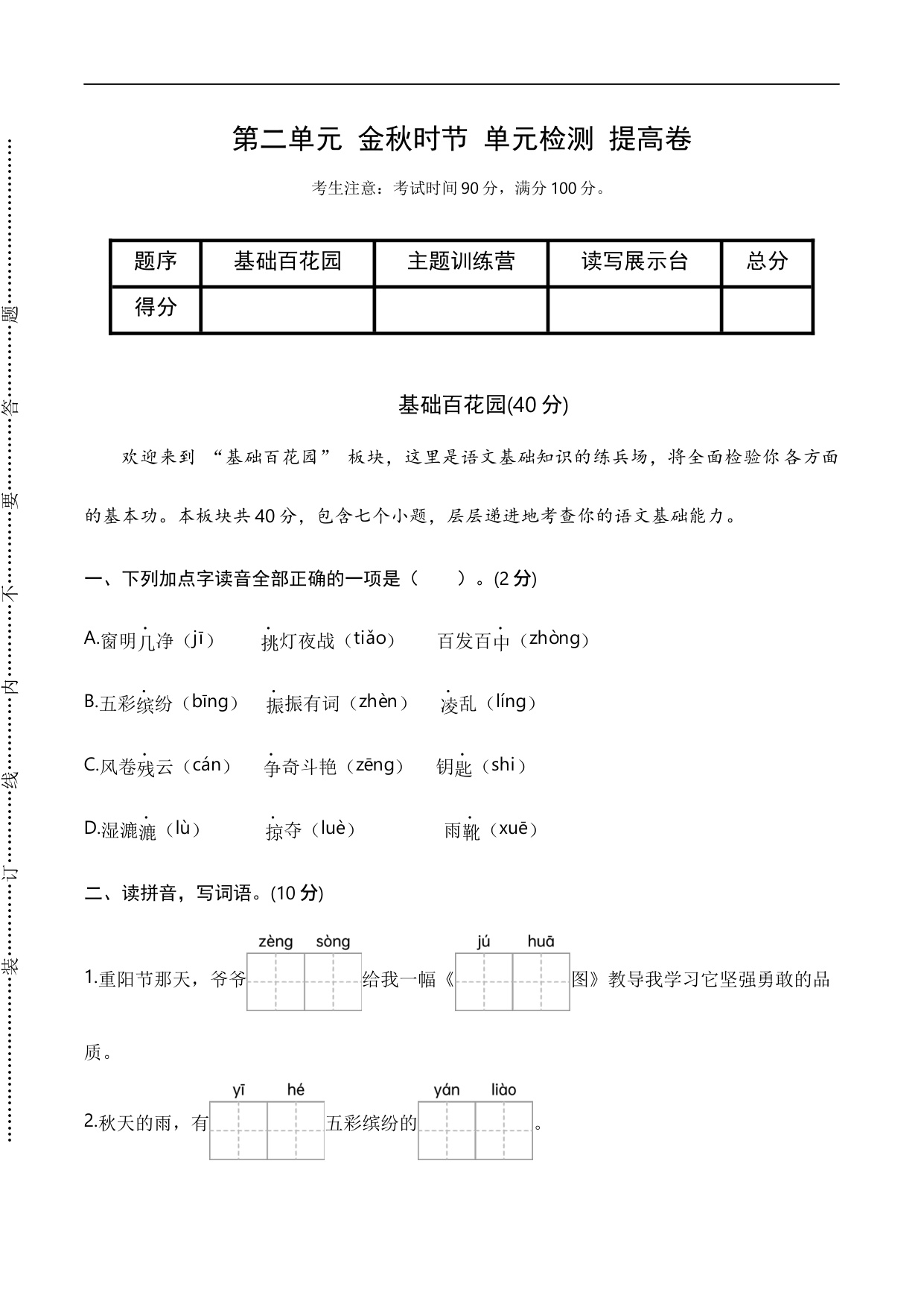第二单元 金秋时节(单元测试 提高卷)