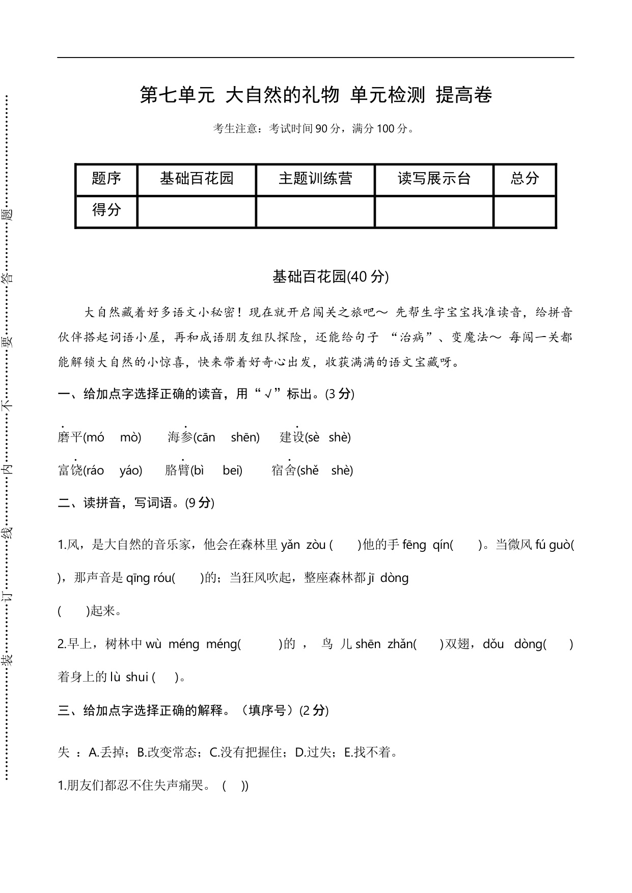 第七单元 走近自然(单元测试 提高卷)