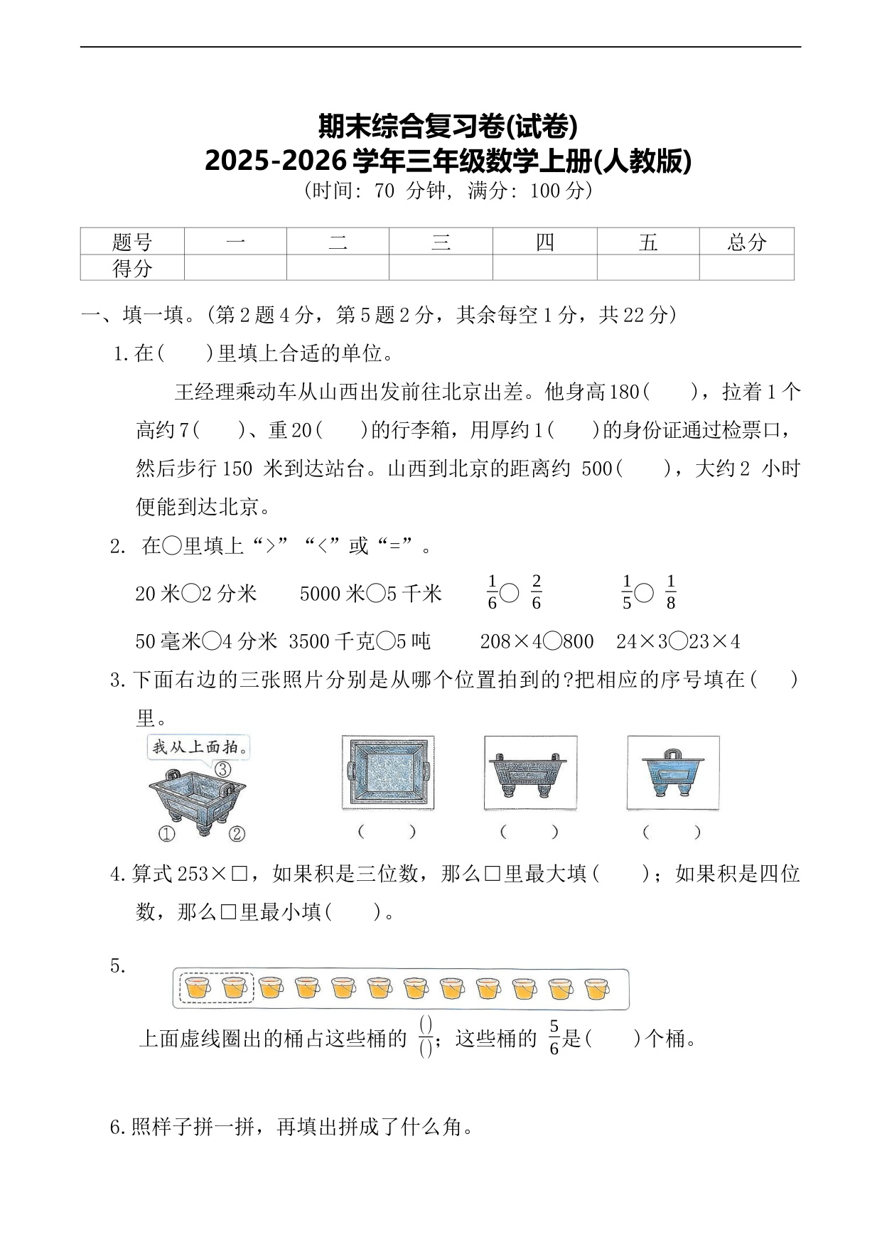 【新情境·新趋势】人教版数学·三年级上册期末情境卷试题(A)卷【A4版(试题卷)】