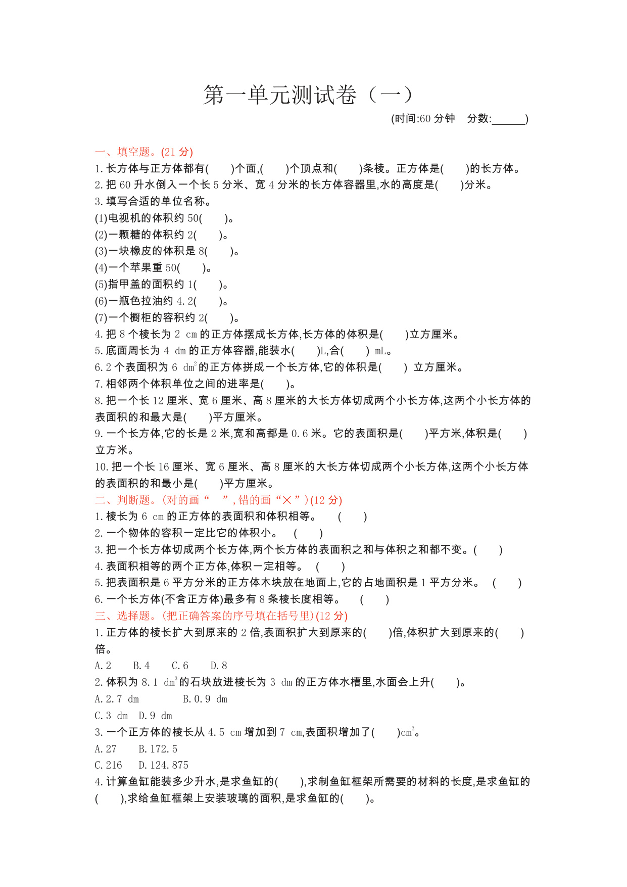 五年级下册数学北京版第1单元测试卷(1)(含答案)