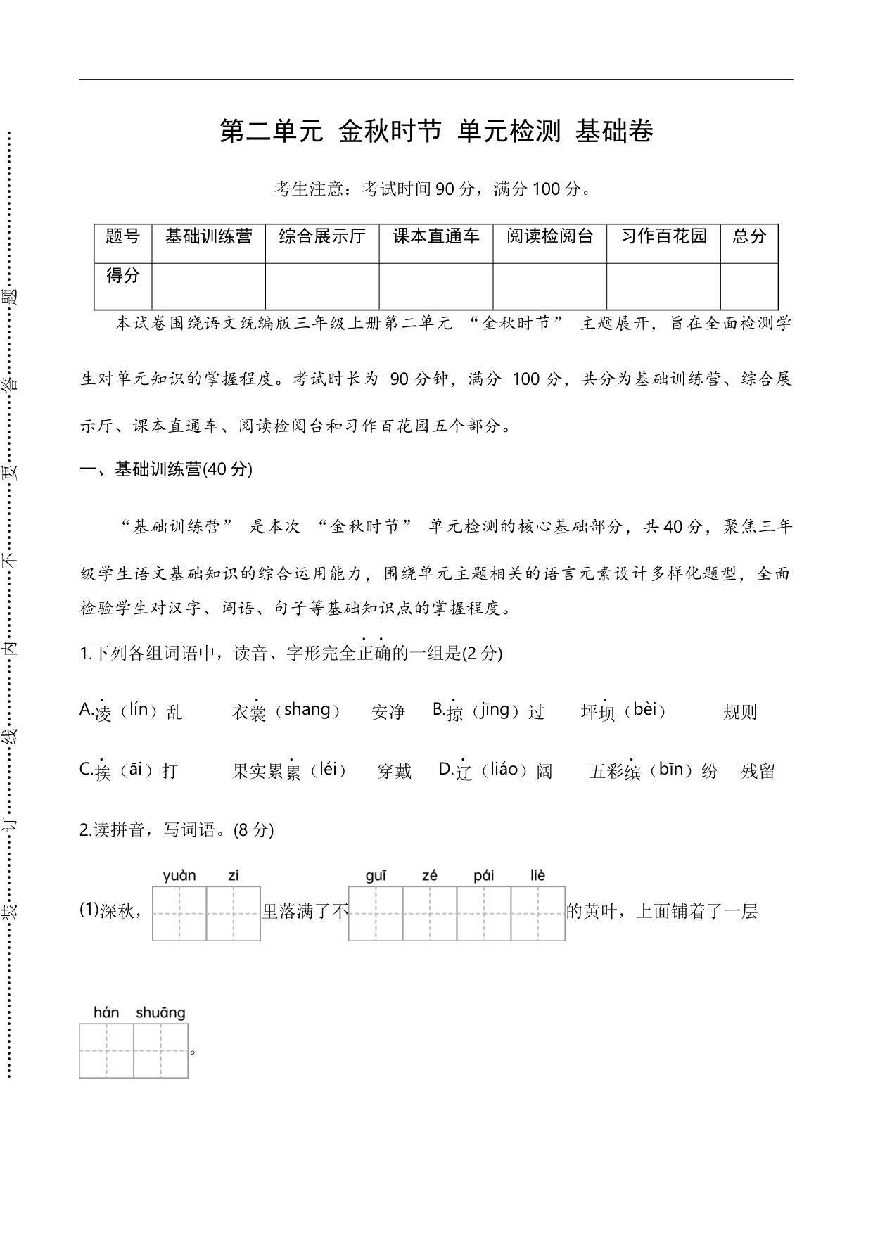 期末综合复习卷(二)(试卷)部编版语文五年级上册