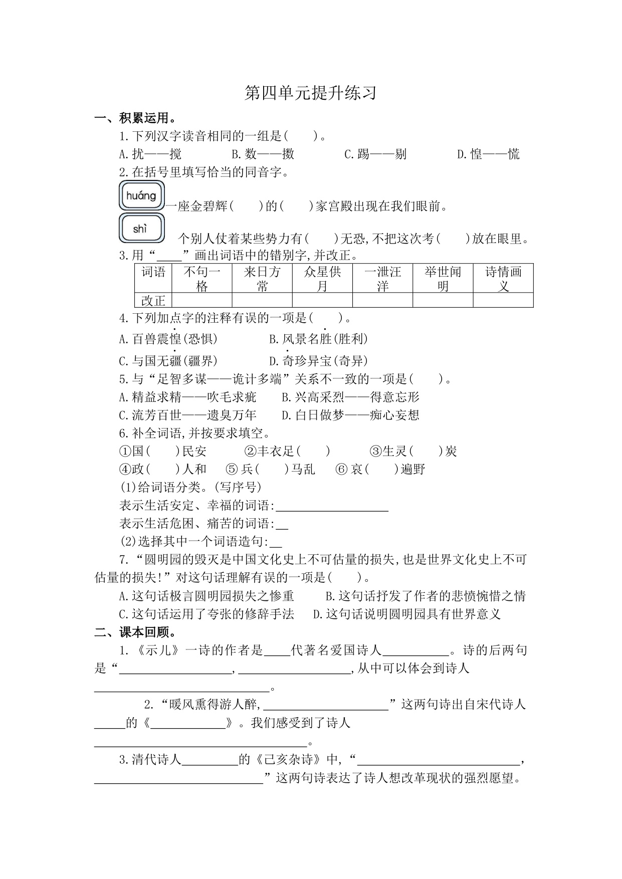 第四单元提升练习