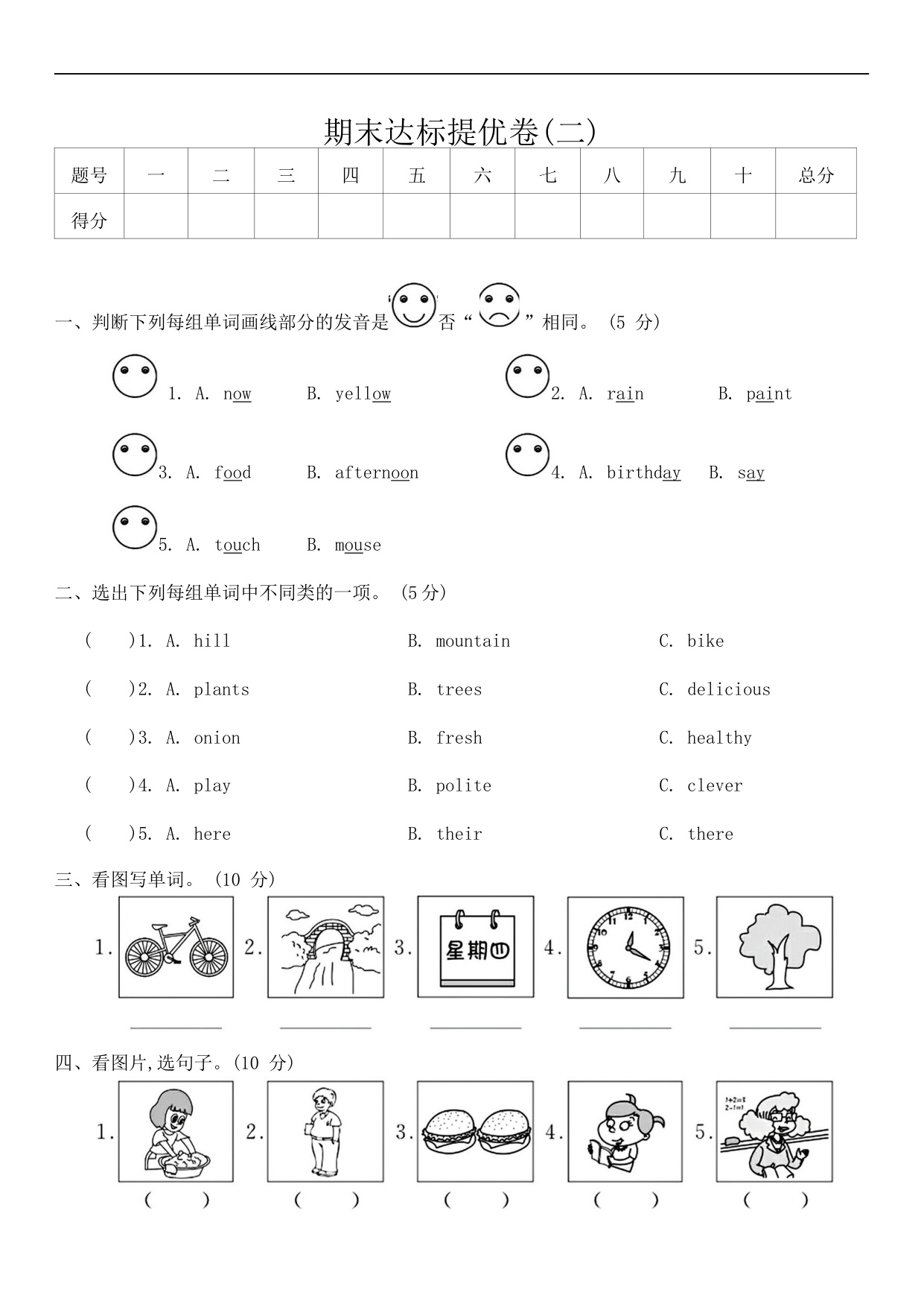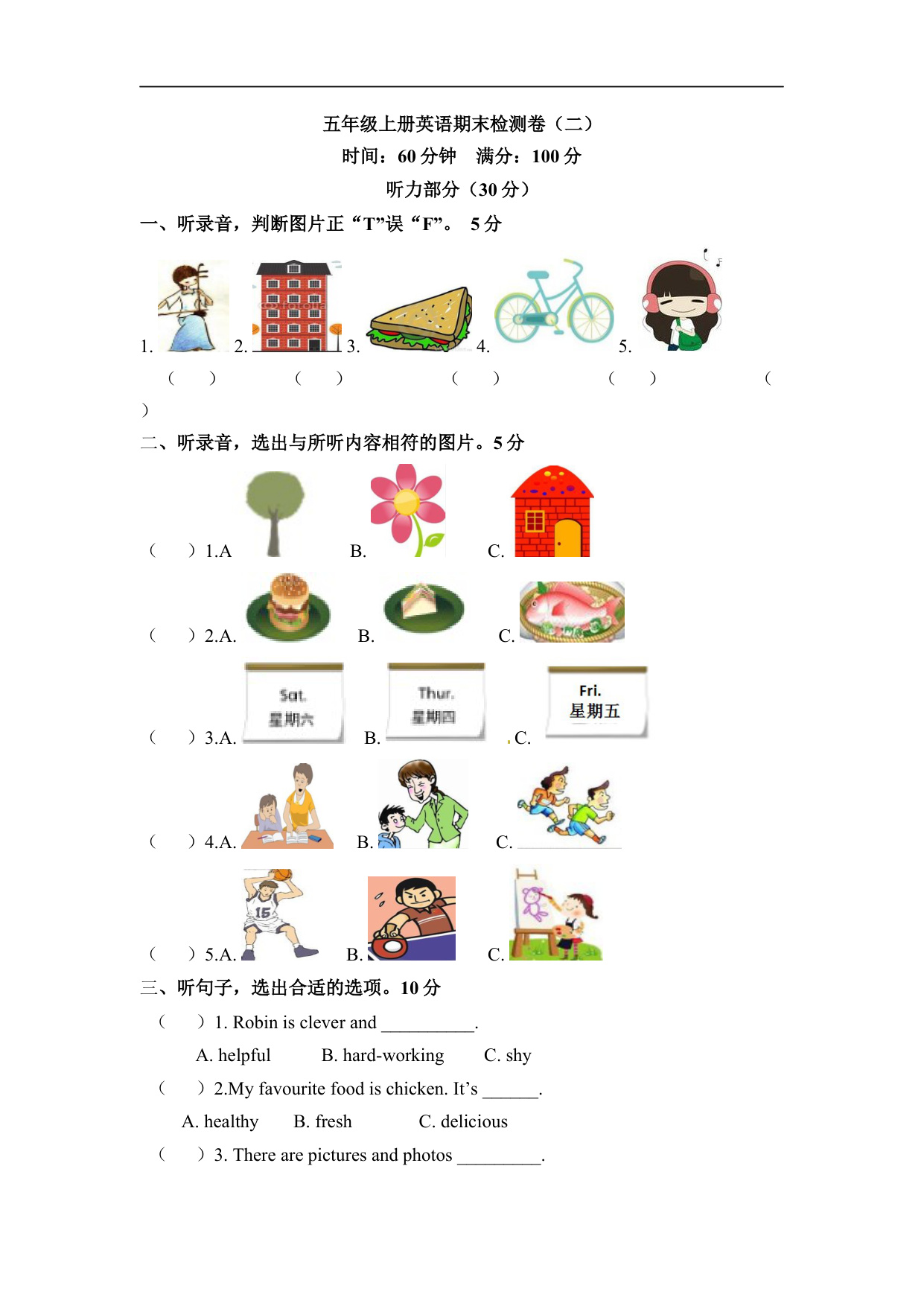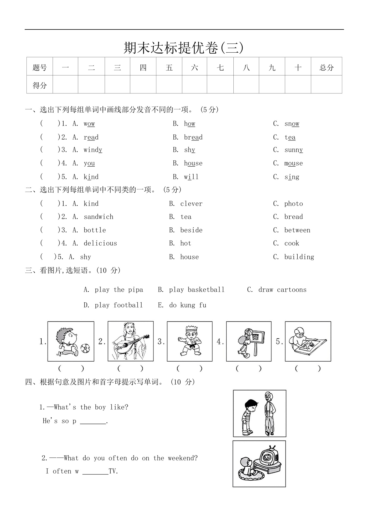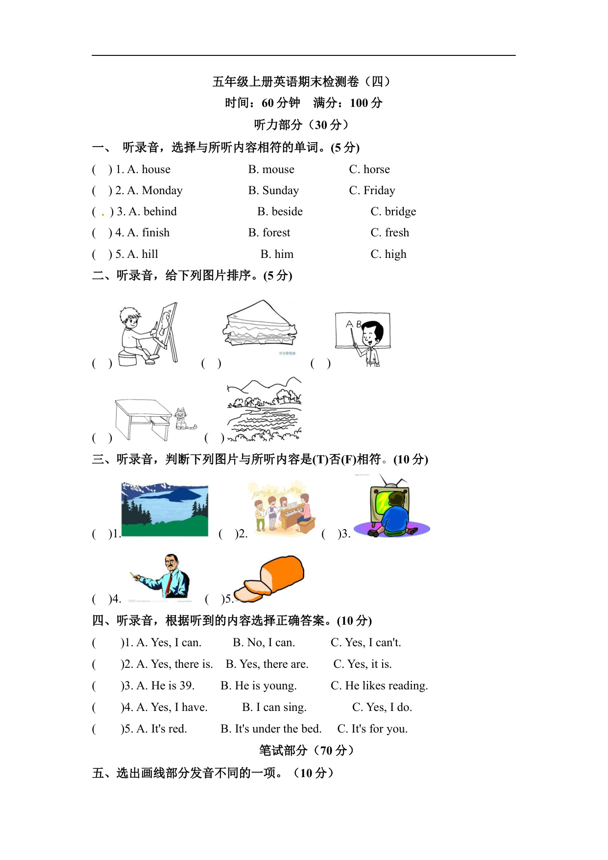 五年级上册英语期末检测卷(三) 人教PEP( 含听力材料和答案)