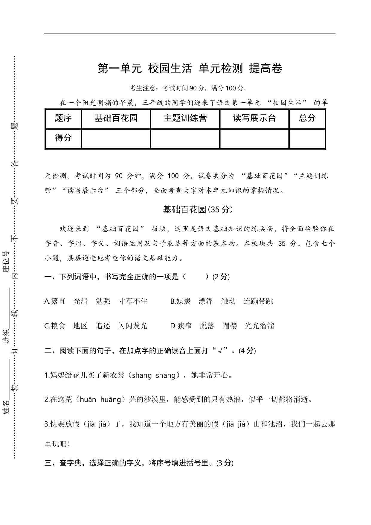 人教PEP版五年级上册单元达标测试卷 Unit1 What's he like (A卷)