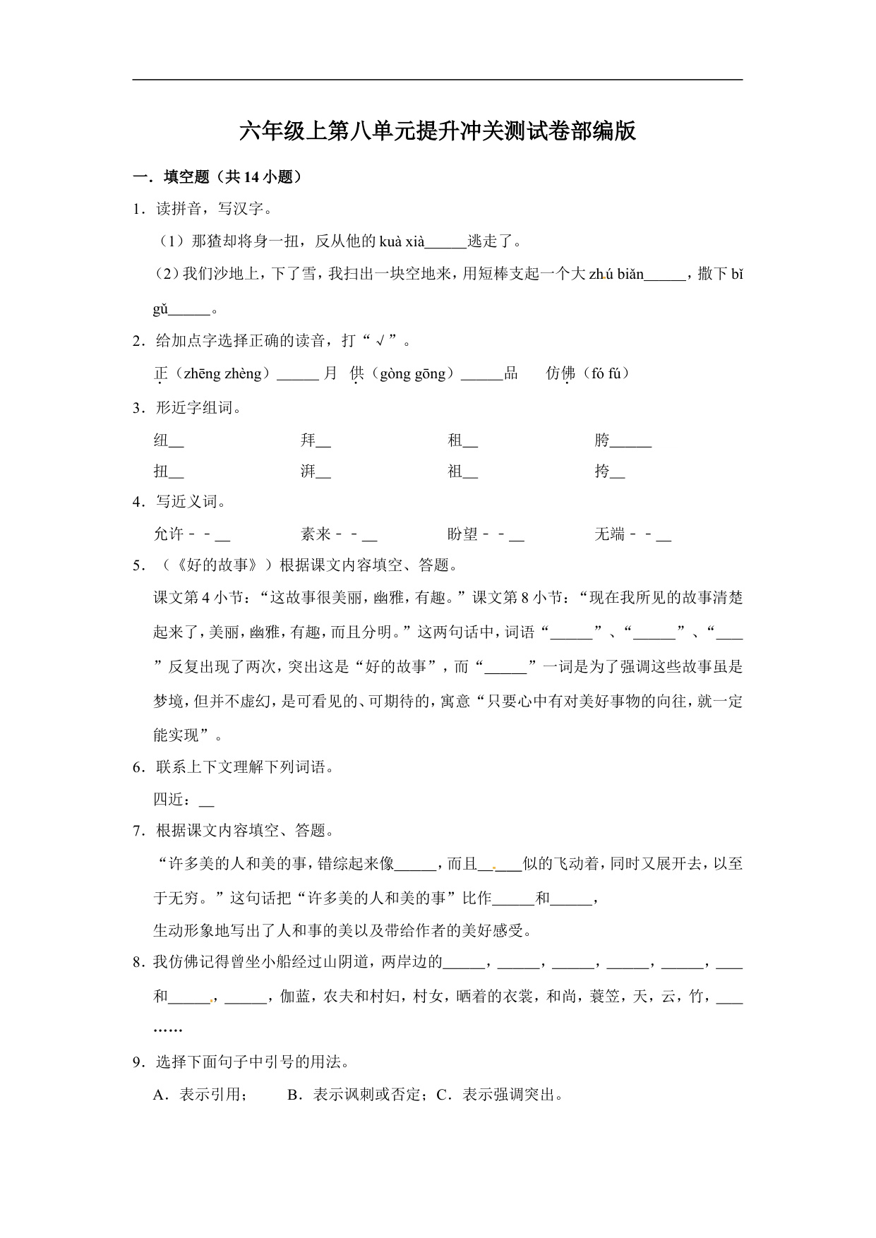 六年级上册 语文第八单元提升冲关测试卷部编版(含答案)