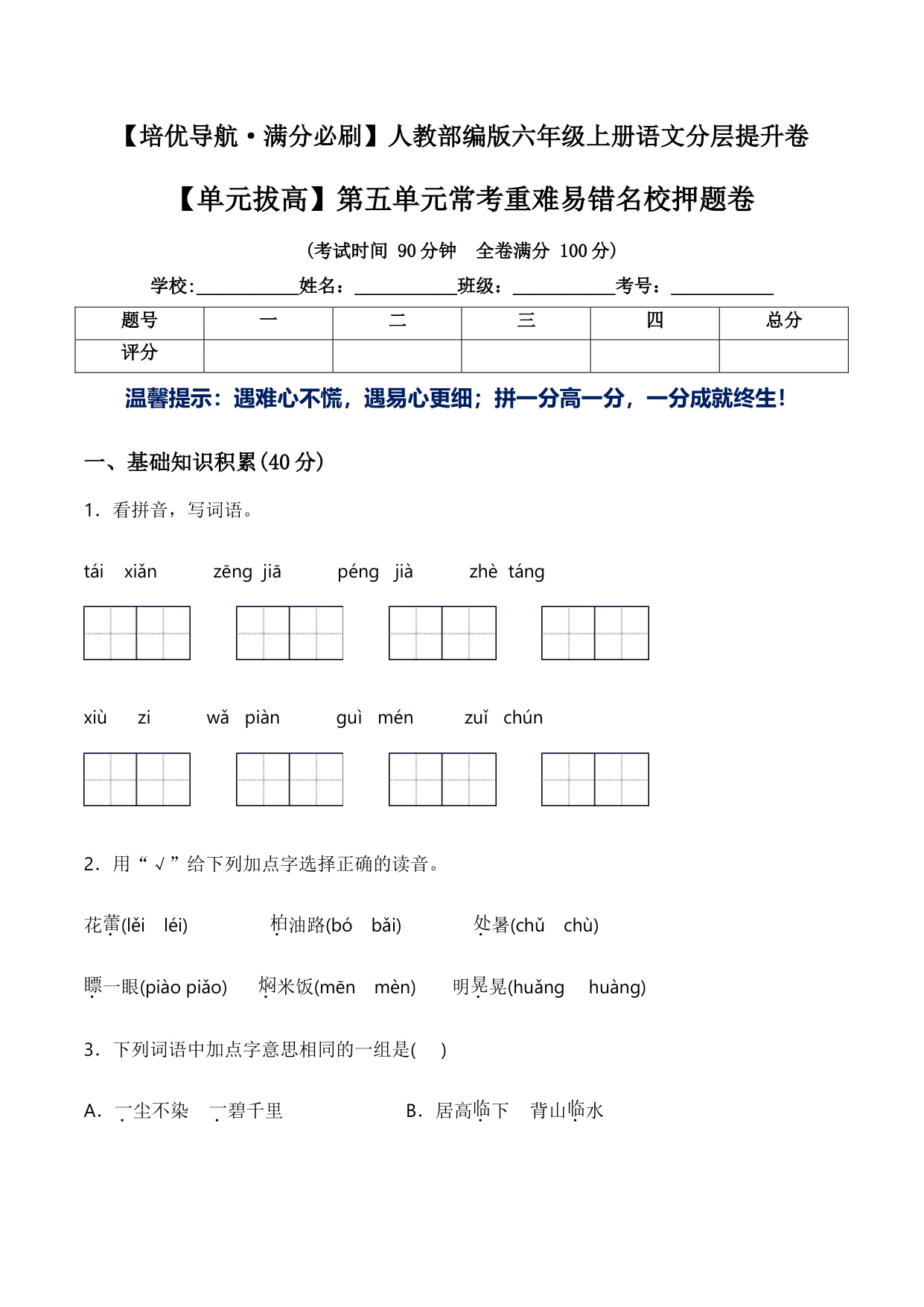 六年级上册 语文第五单元提升冲关测试卷部编版(含答案)