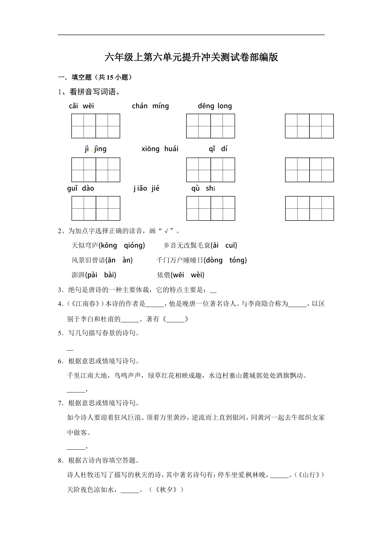 六年级上册 语文第六单元提升冲关测试卷部编版(含答案)