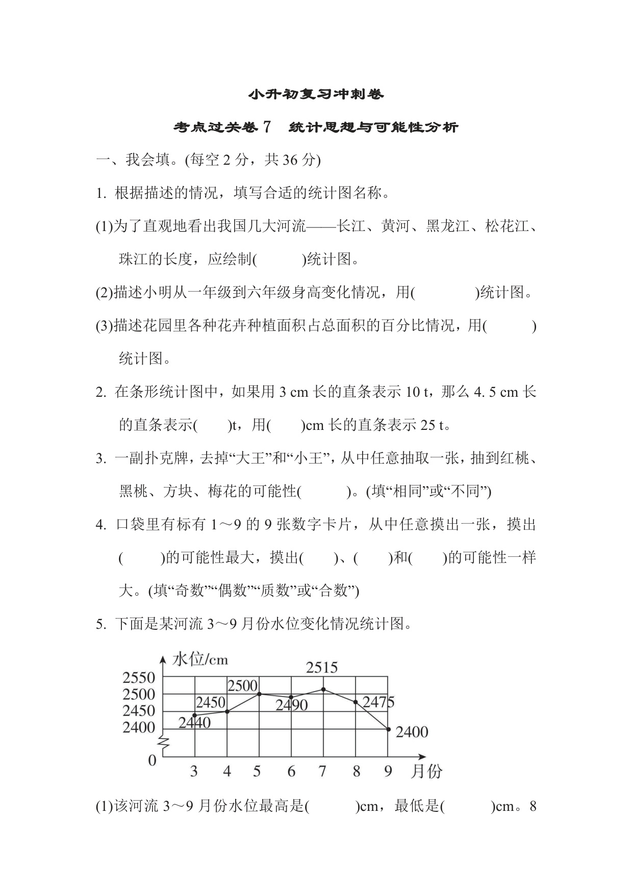 六年级下册数学苏教版考点过关卷7 统计思想与可能性分析(含答案)