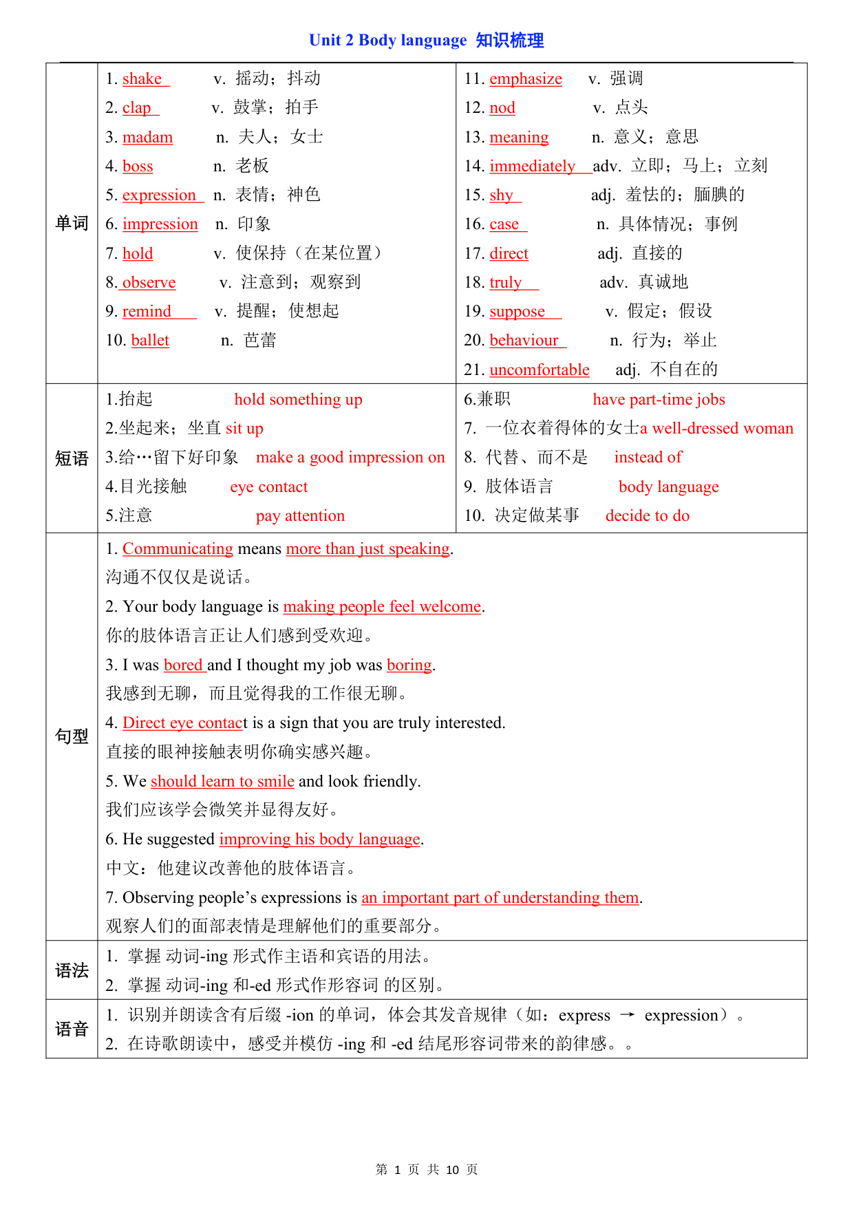 八年级(下)英语Unit 2 知识梳理(沪教版)