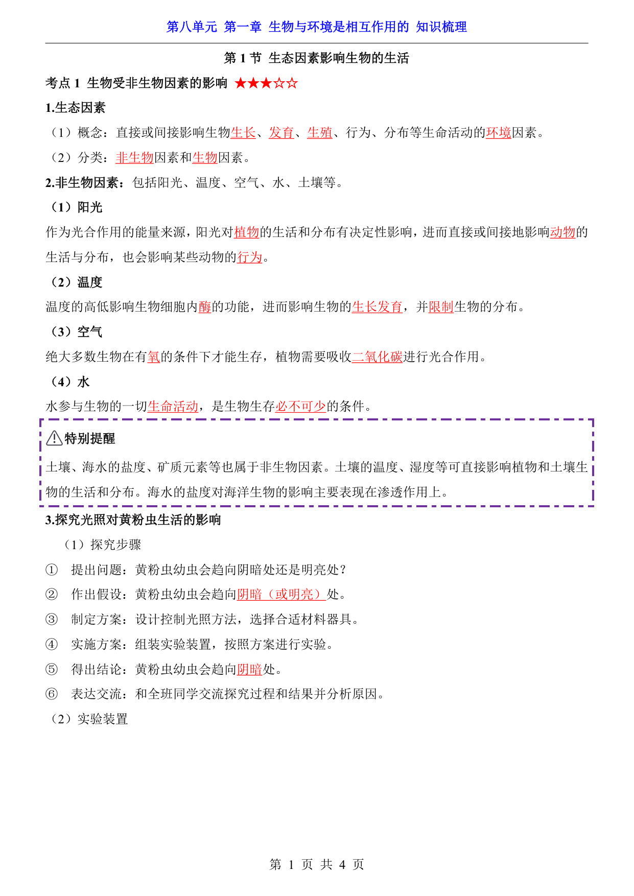 八年级(下)生物第8单元第1章生物与环境是相互作用的 知识梳理(济南版)