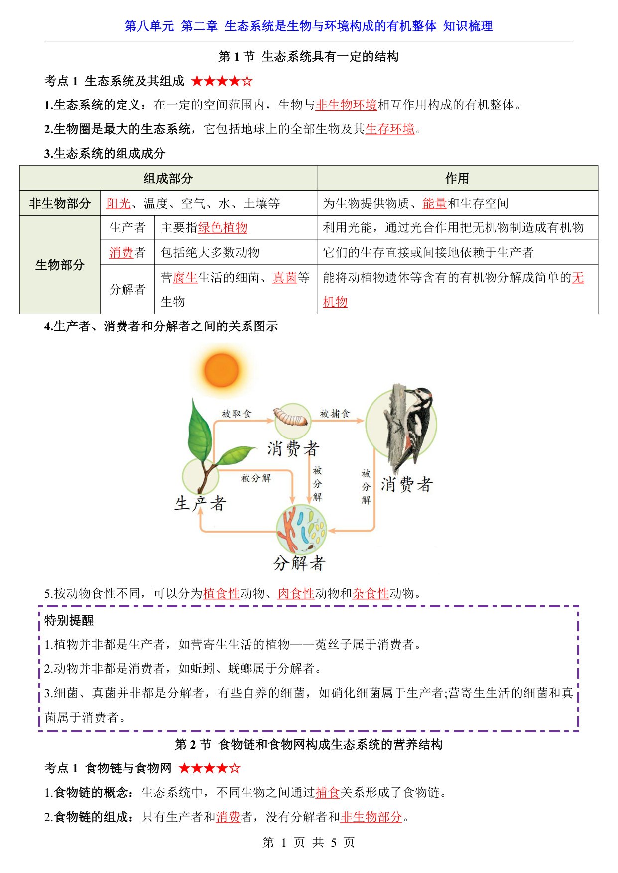 八年级(下)生物第8单元第2章生态系统是生物与环境构成的有机整体 知识梳理(济南版)