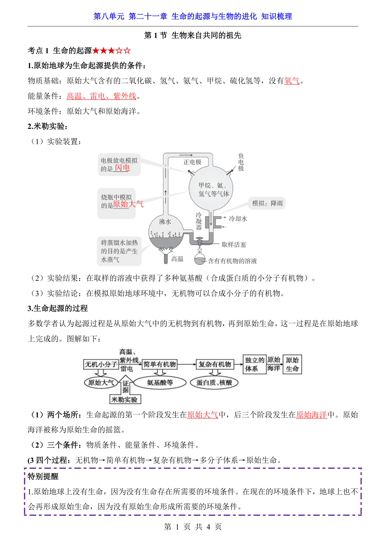 八年级(下)生物第8单元第21章生命的起源与生物的进化 知识梳理(苏科版)