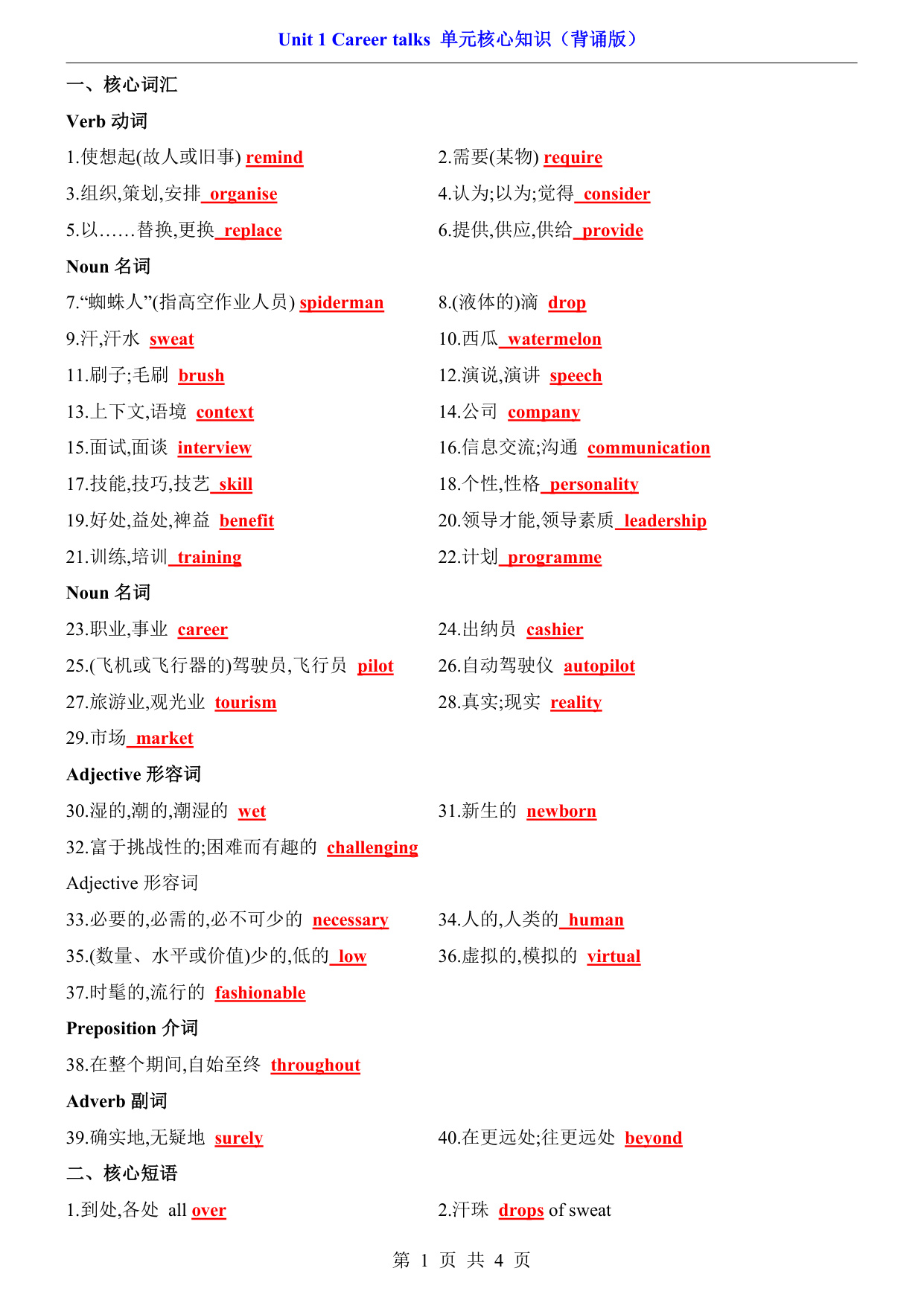 八年级(下)英语Unit 1 核心知识(外研版)