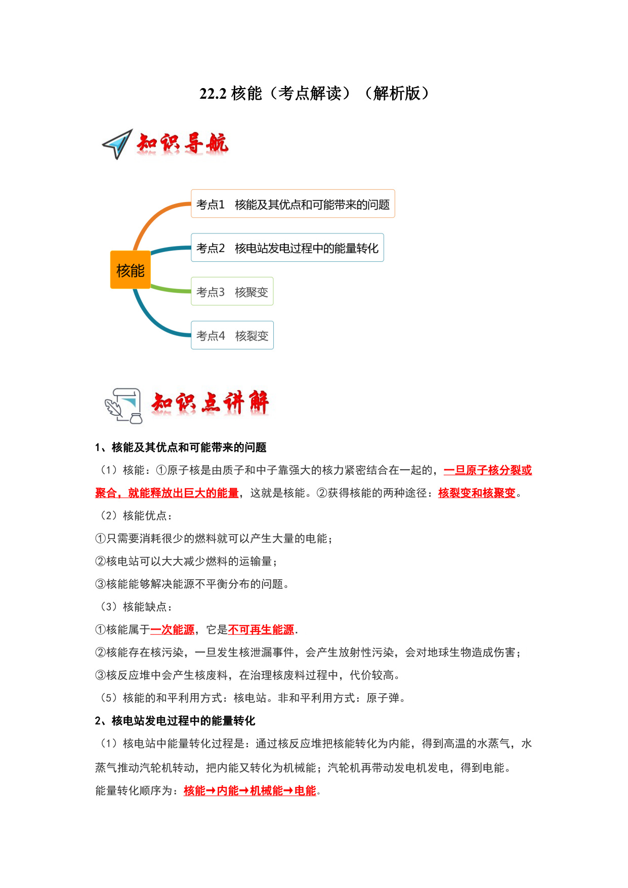 【人教版】九全物理同步练习 22.2 核能(考点解读)(解析版)