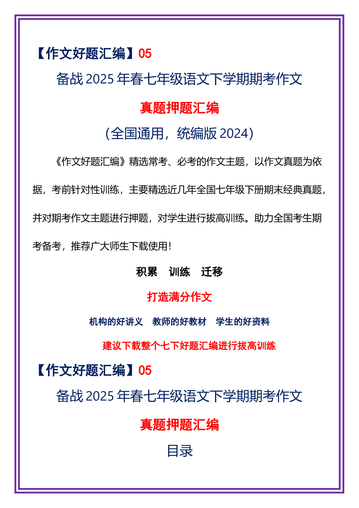 押题05:5篇真题+解题+范文+点评