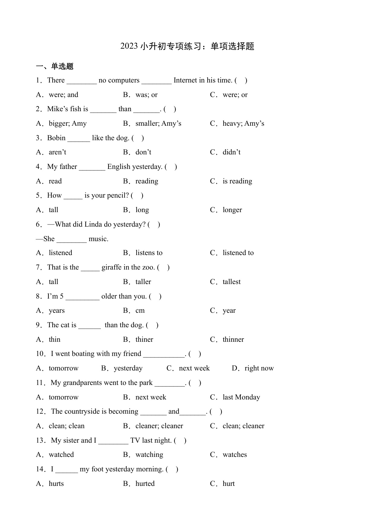 专题06 动词原形、单三、现在分词、过去式、动名词、不定式(真题分类汇编)
