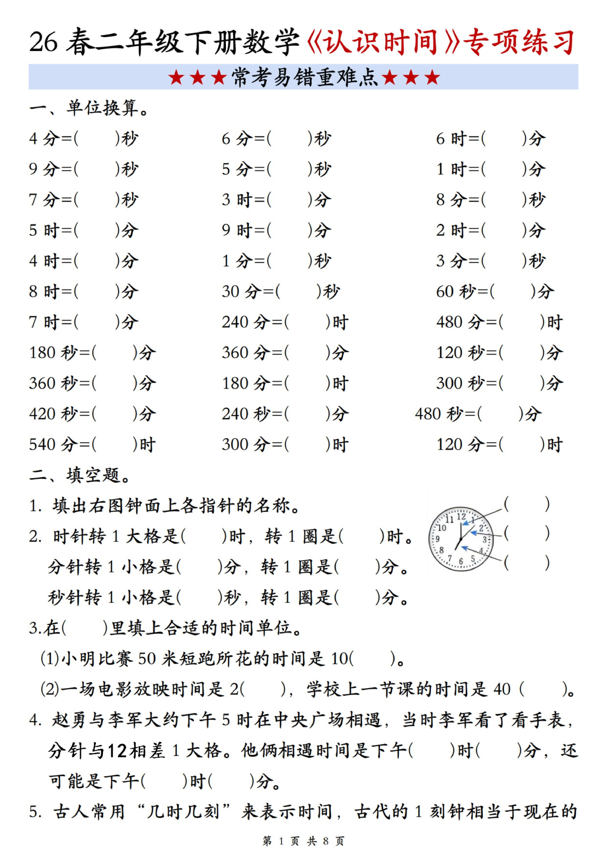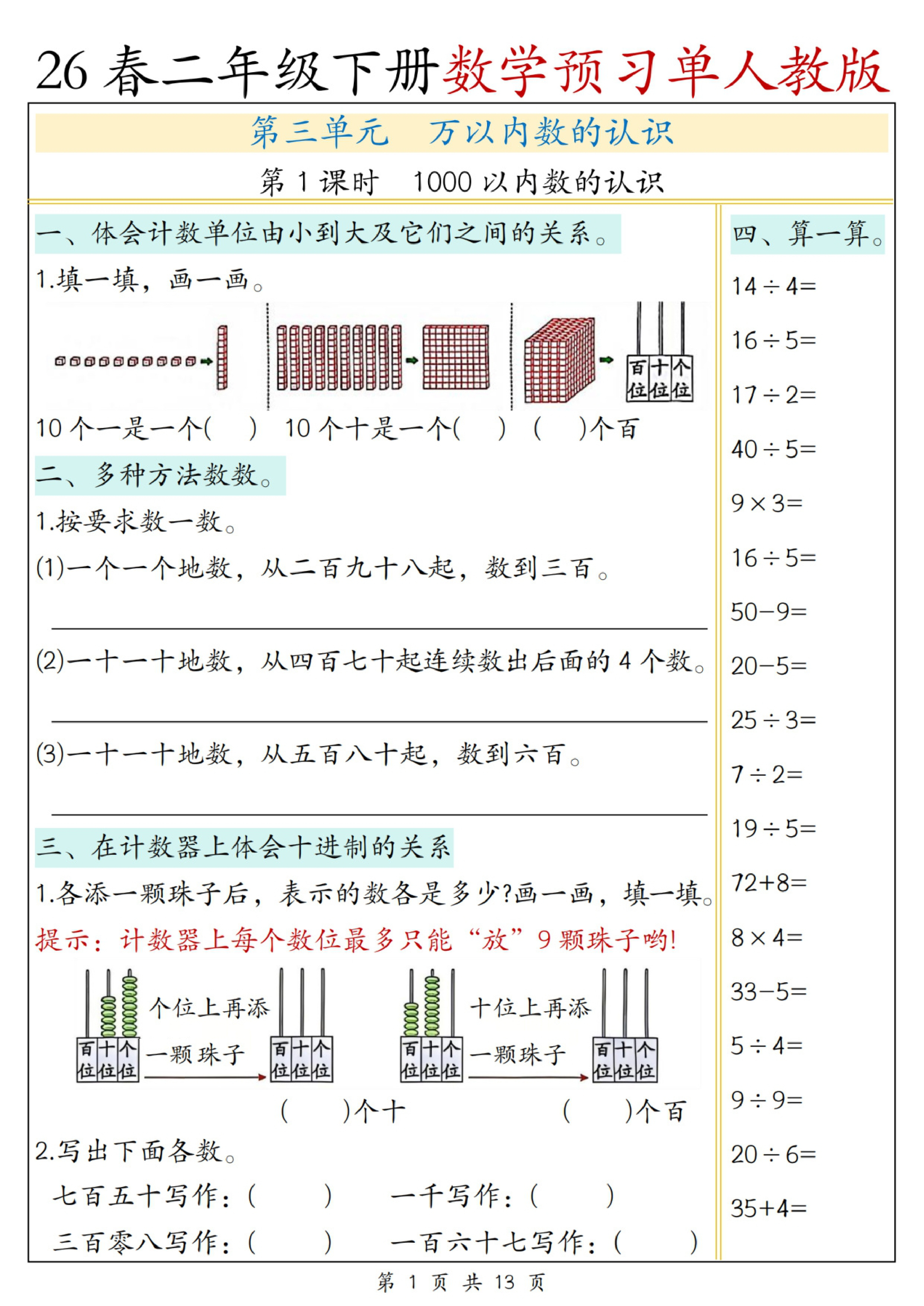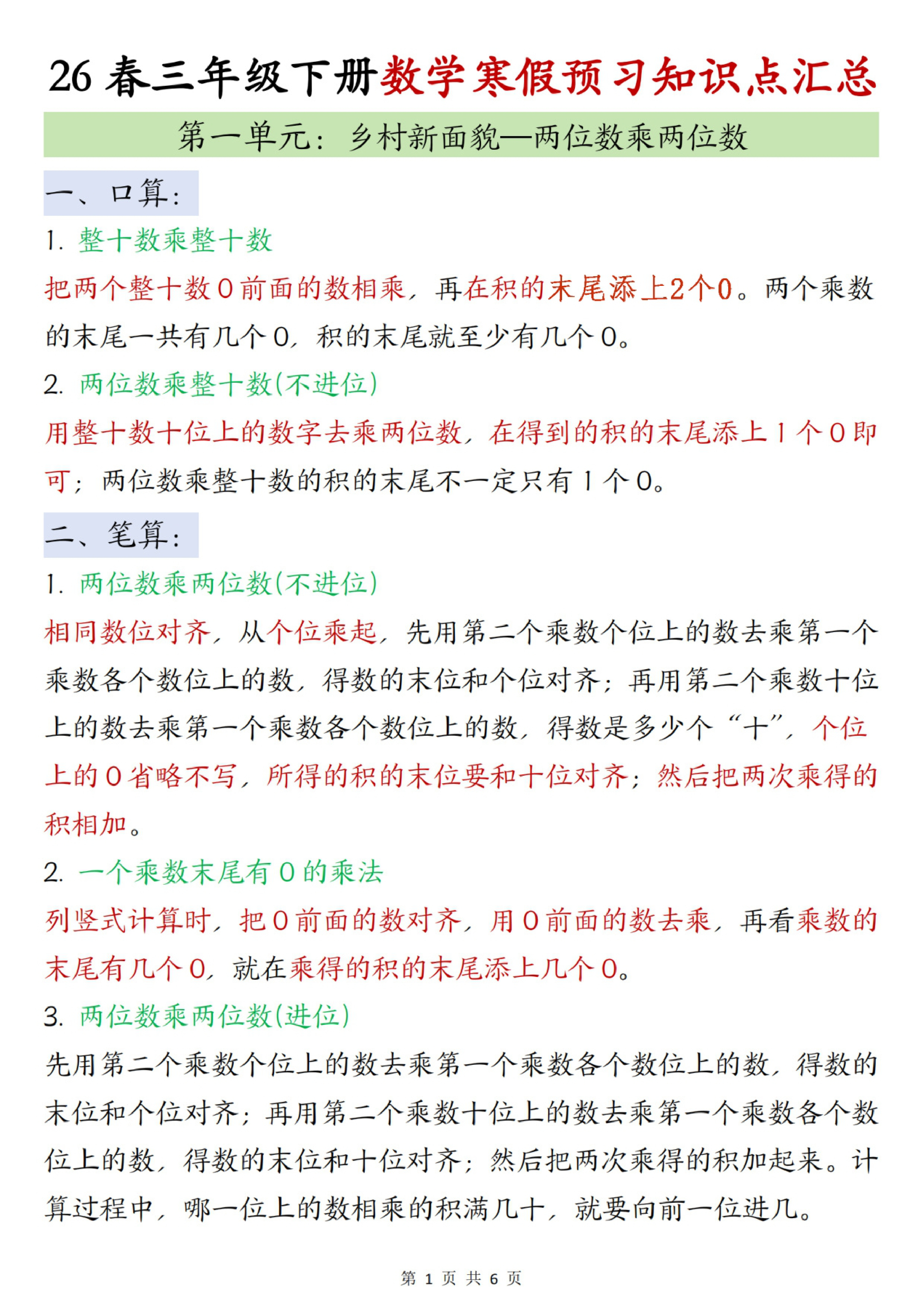 三年级(下)数学寒假预习知识点汇总《人教版》