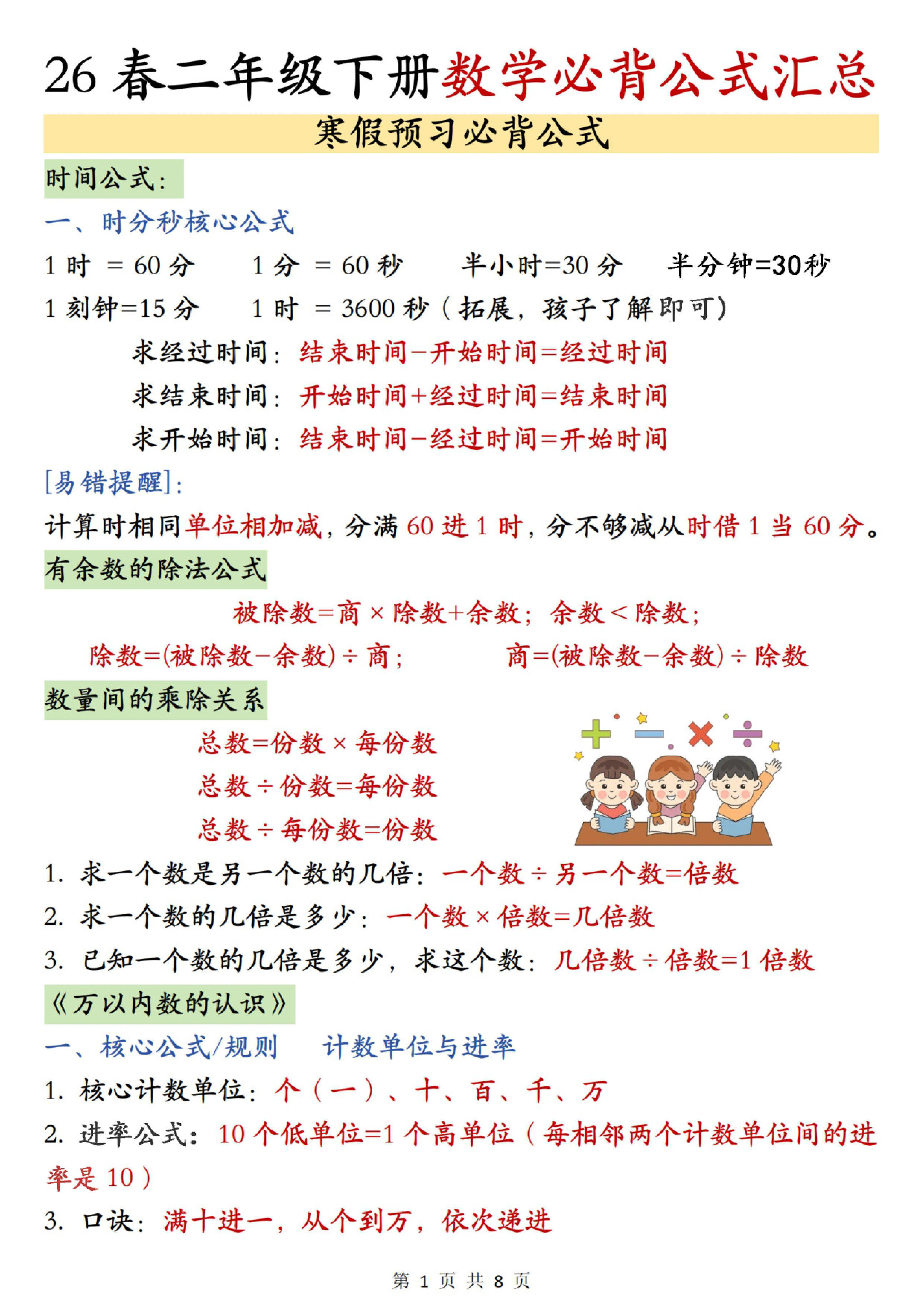 四年级(下)数学寒假预习晨读晚默知识点+公式总结