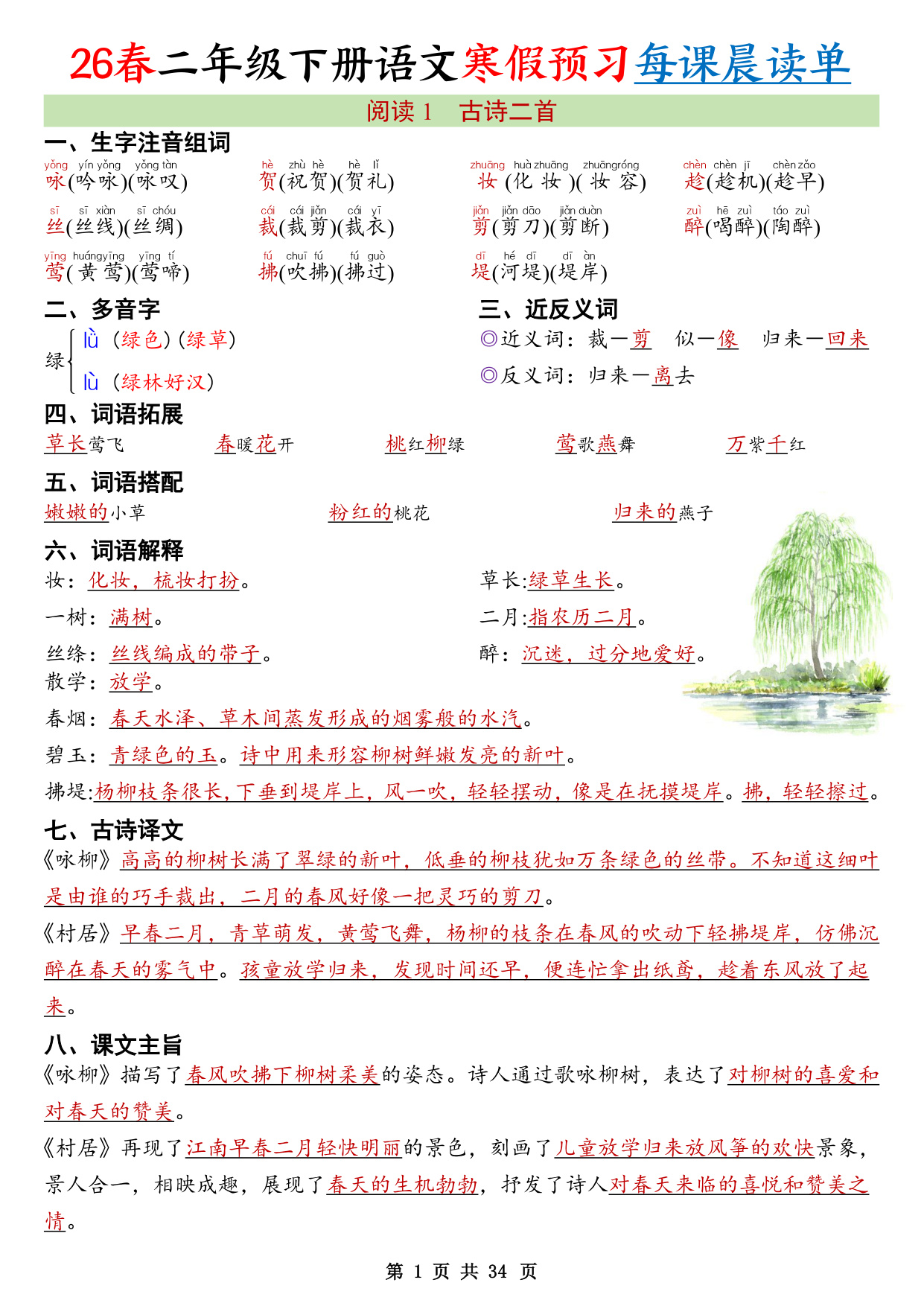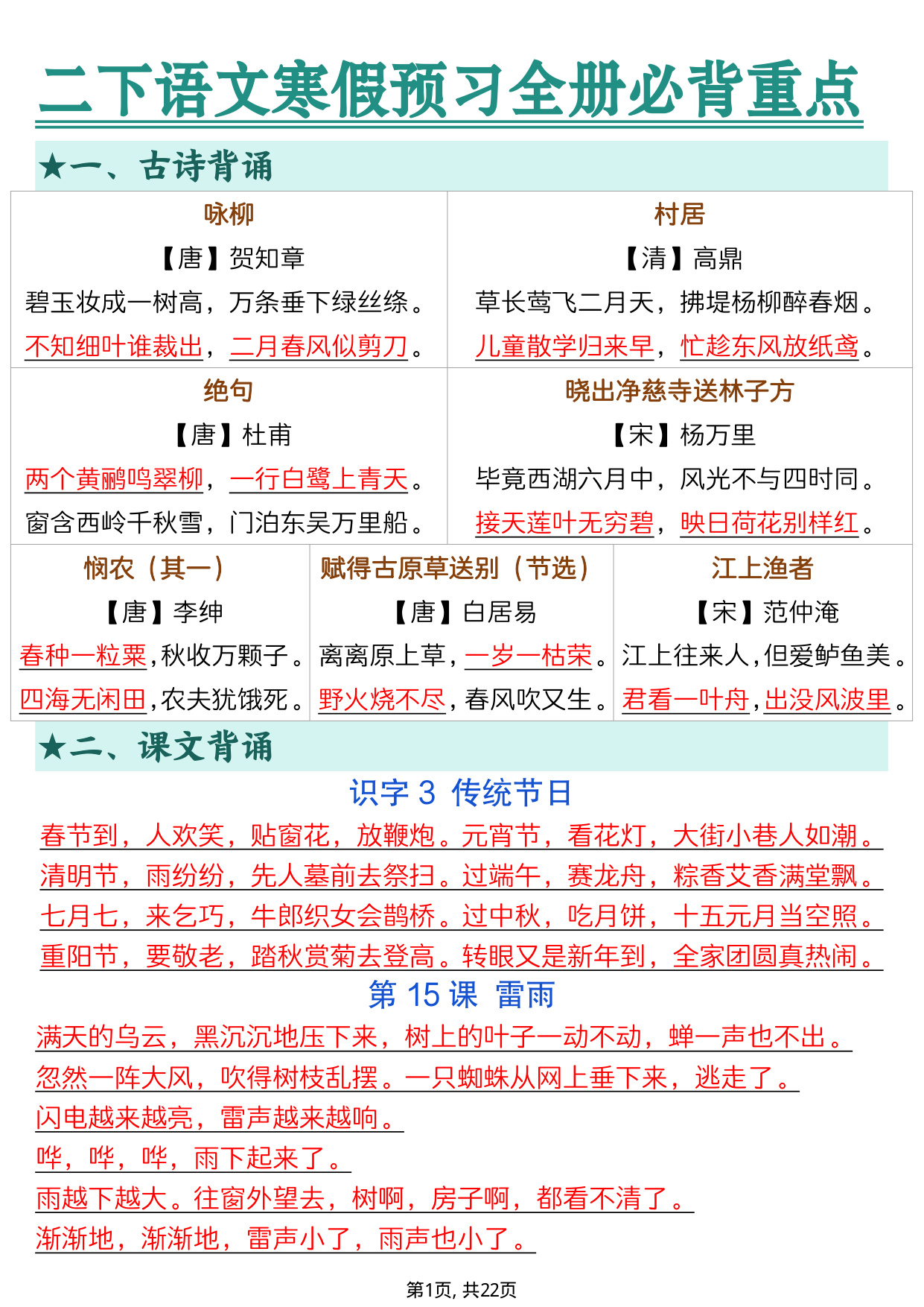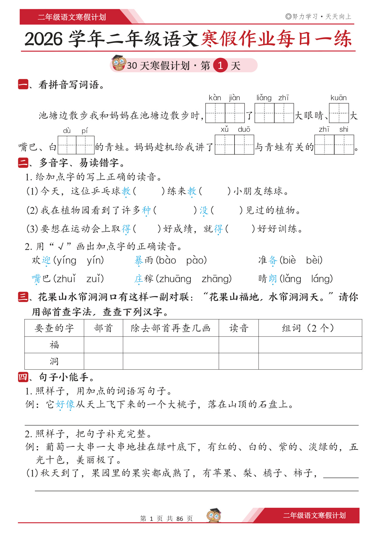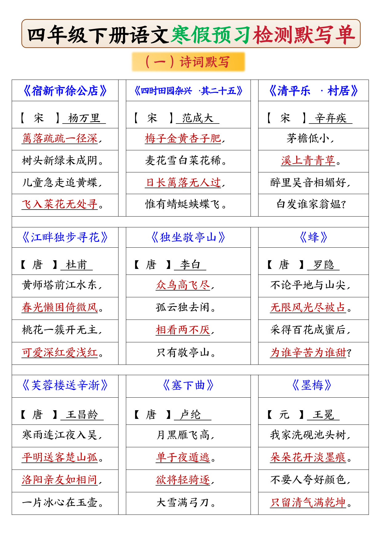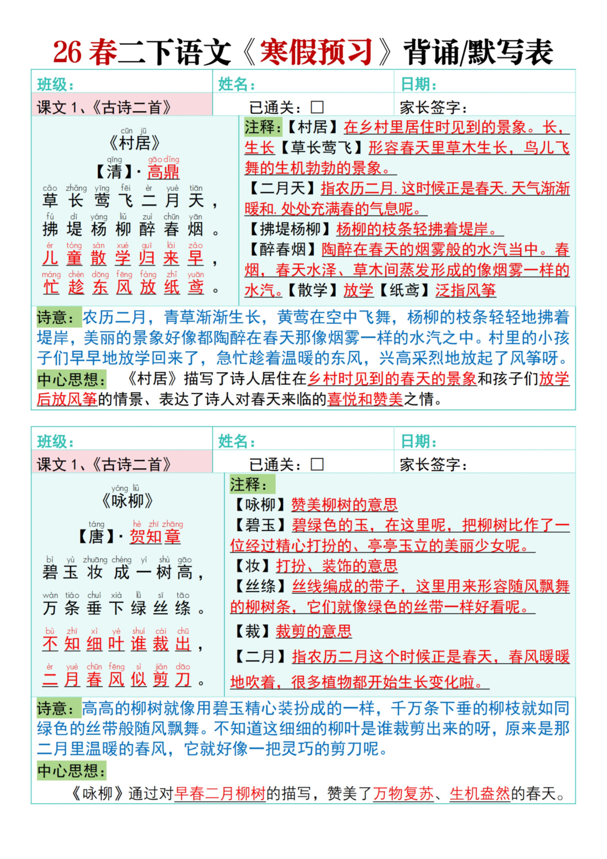 三年级语文寒假作业阅读理解打卡每日一练共20篇