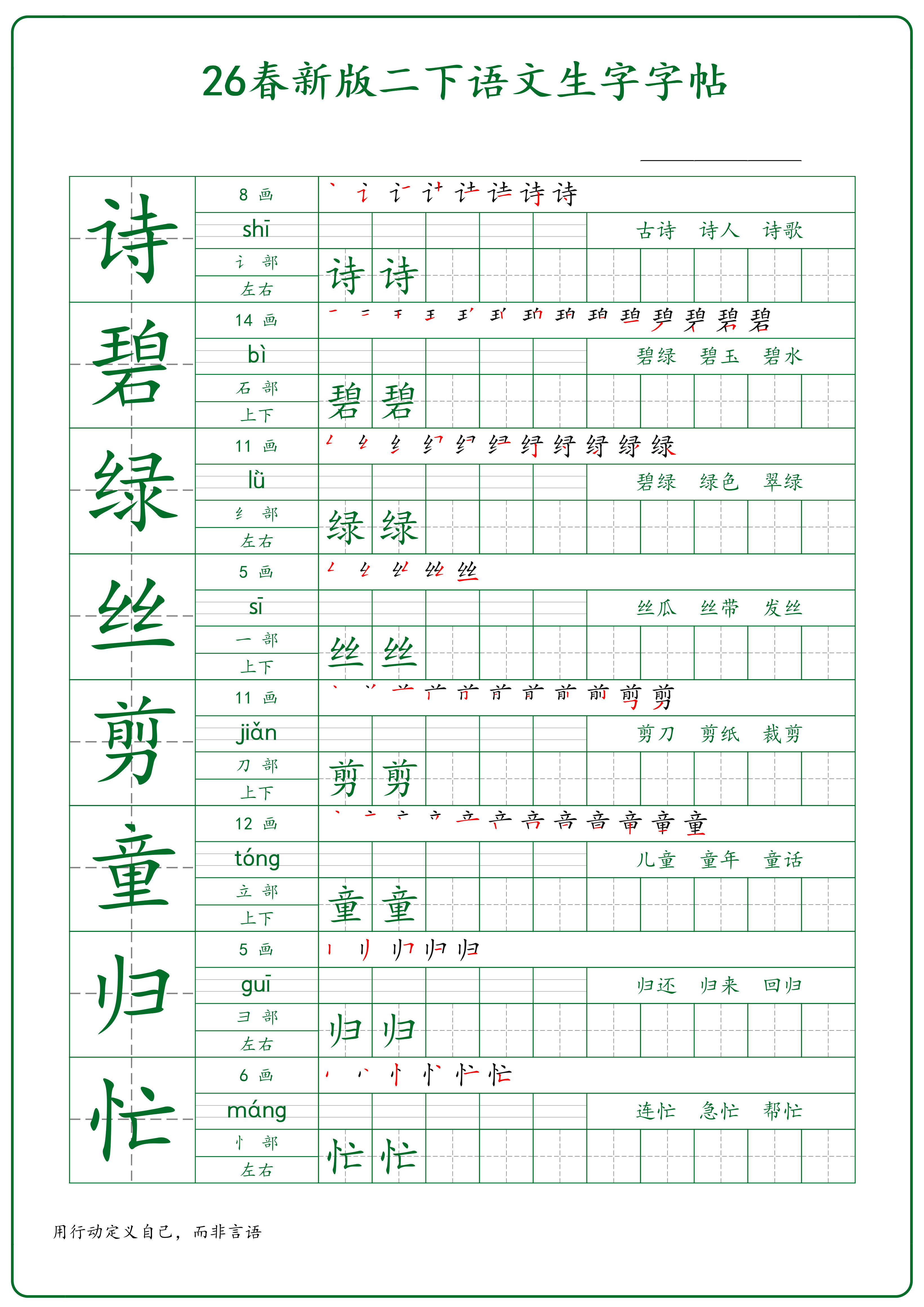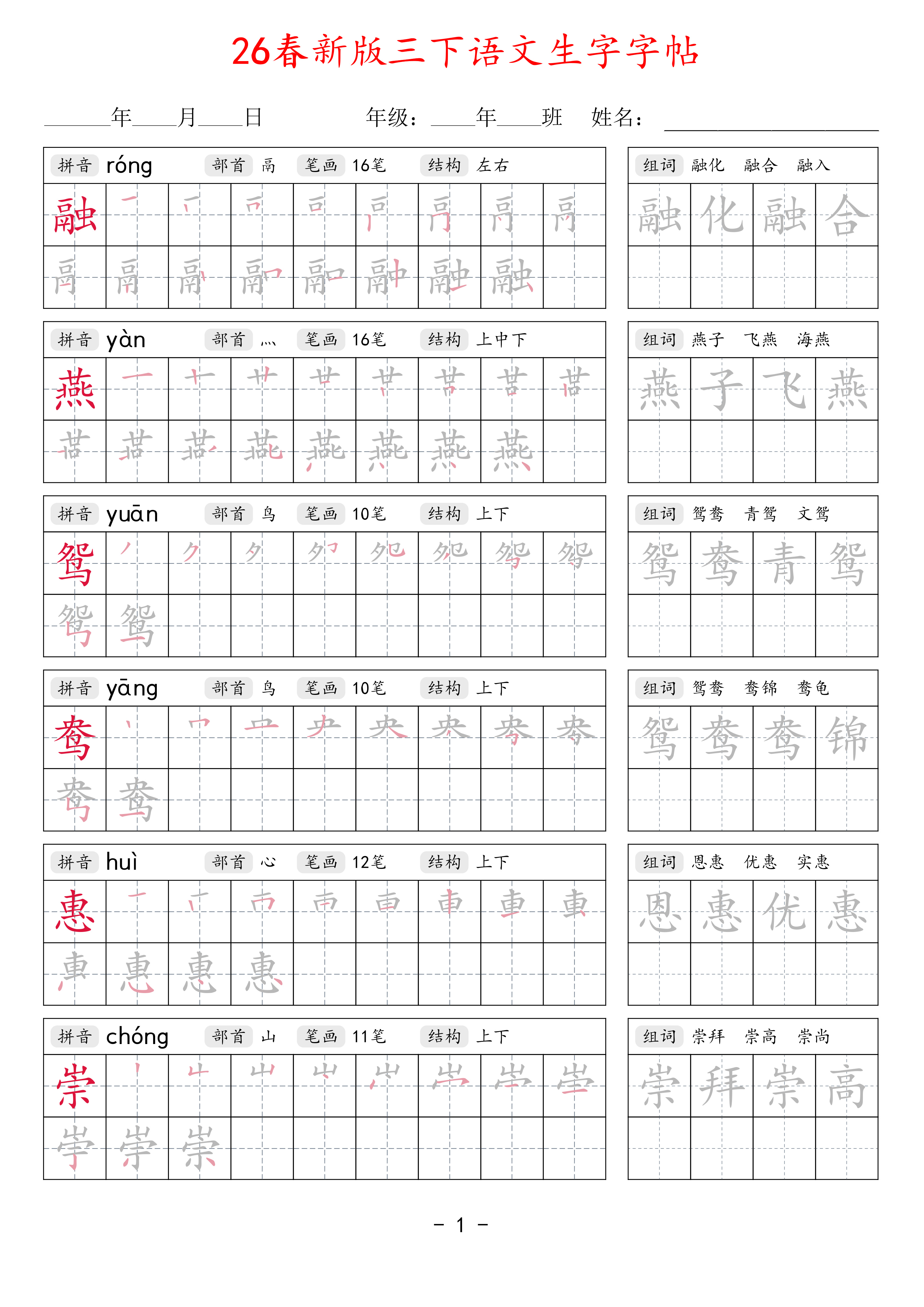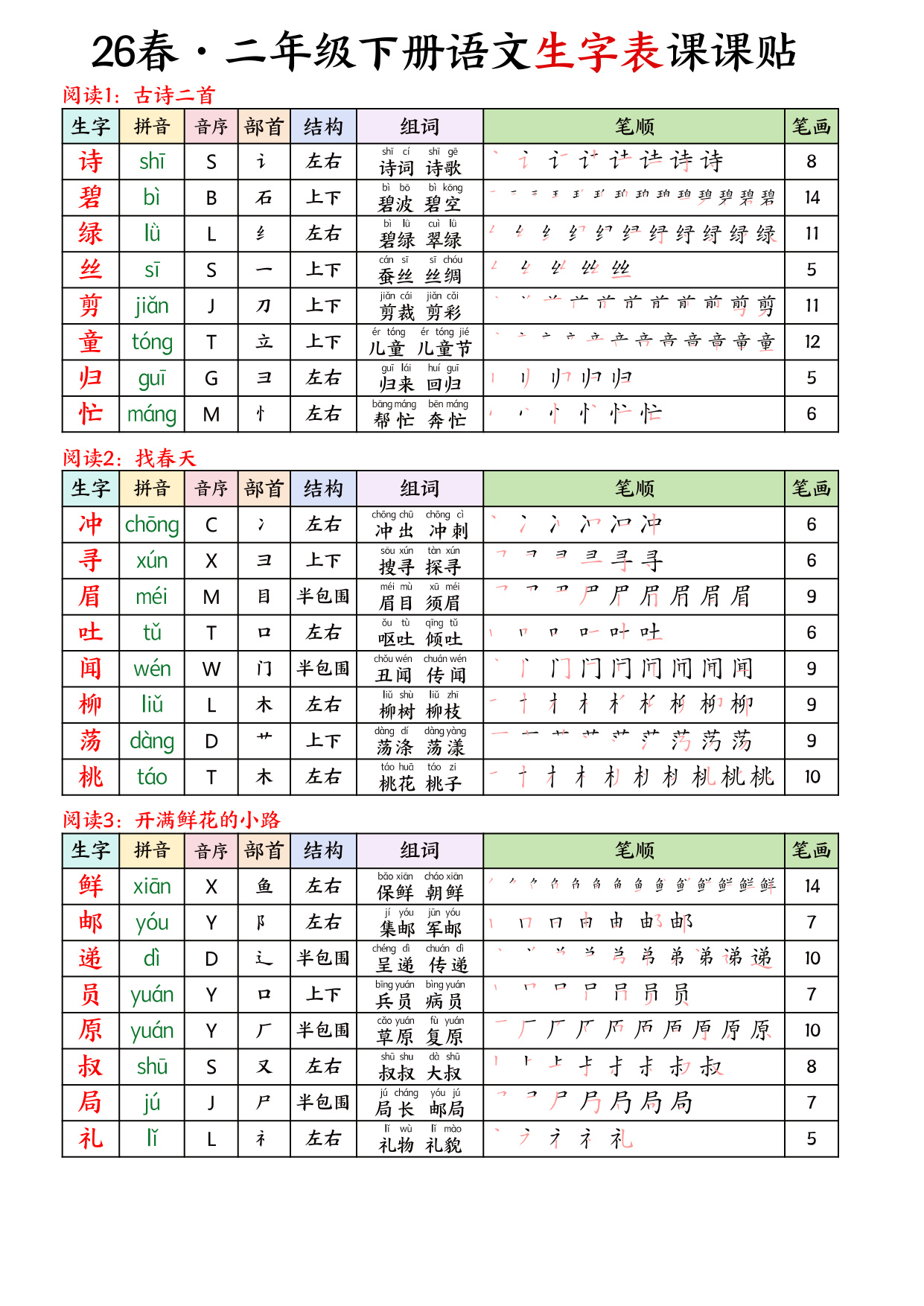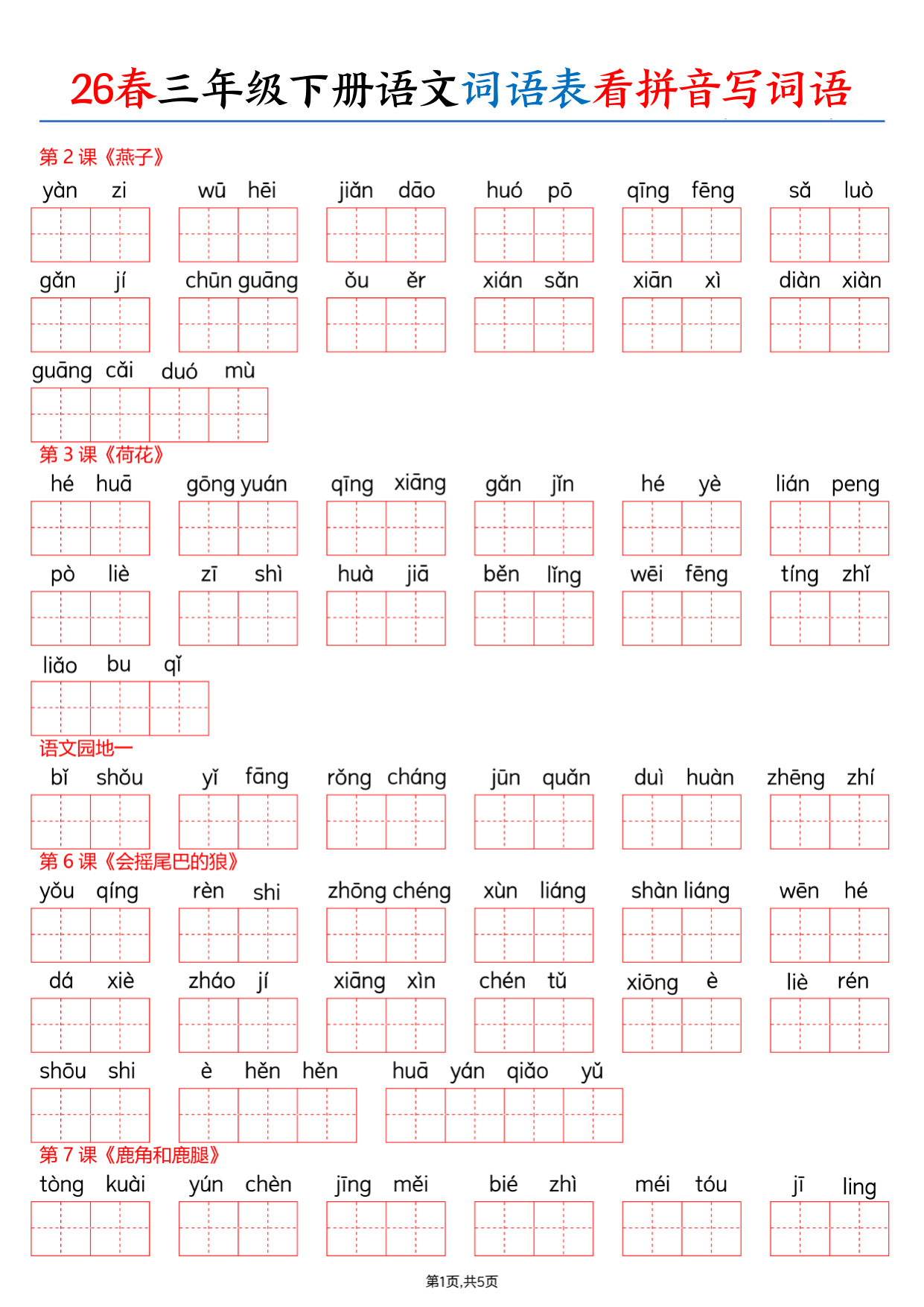 三年级(下)语文 【识字表+写字表+词语表】专项练