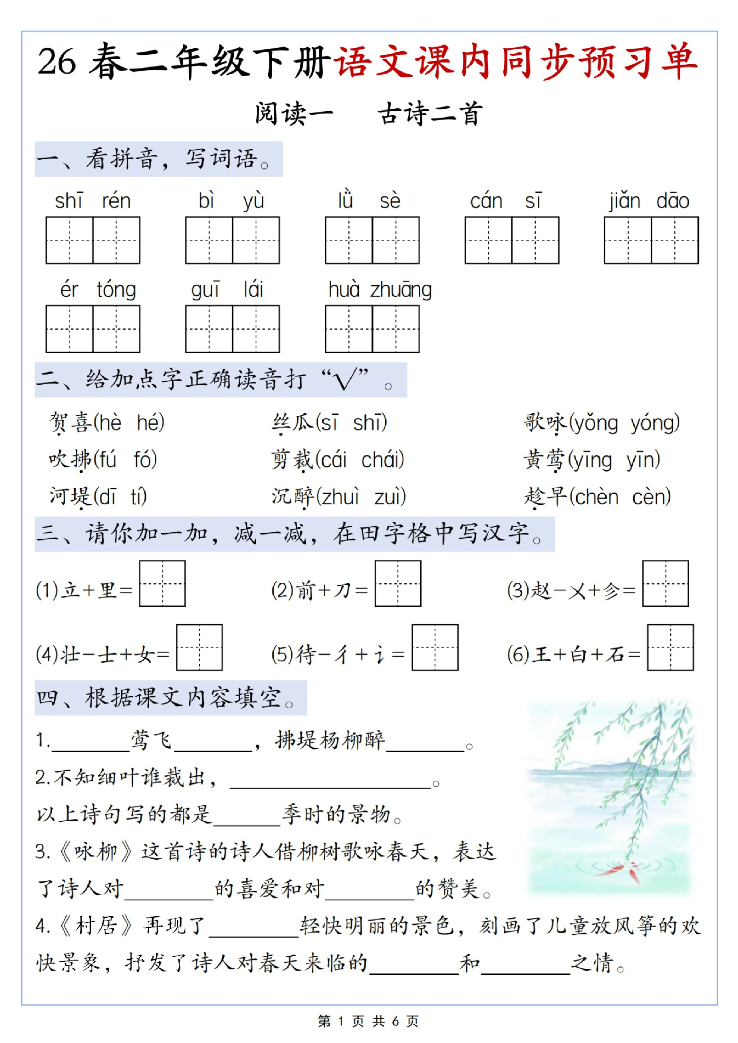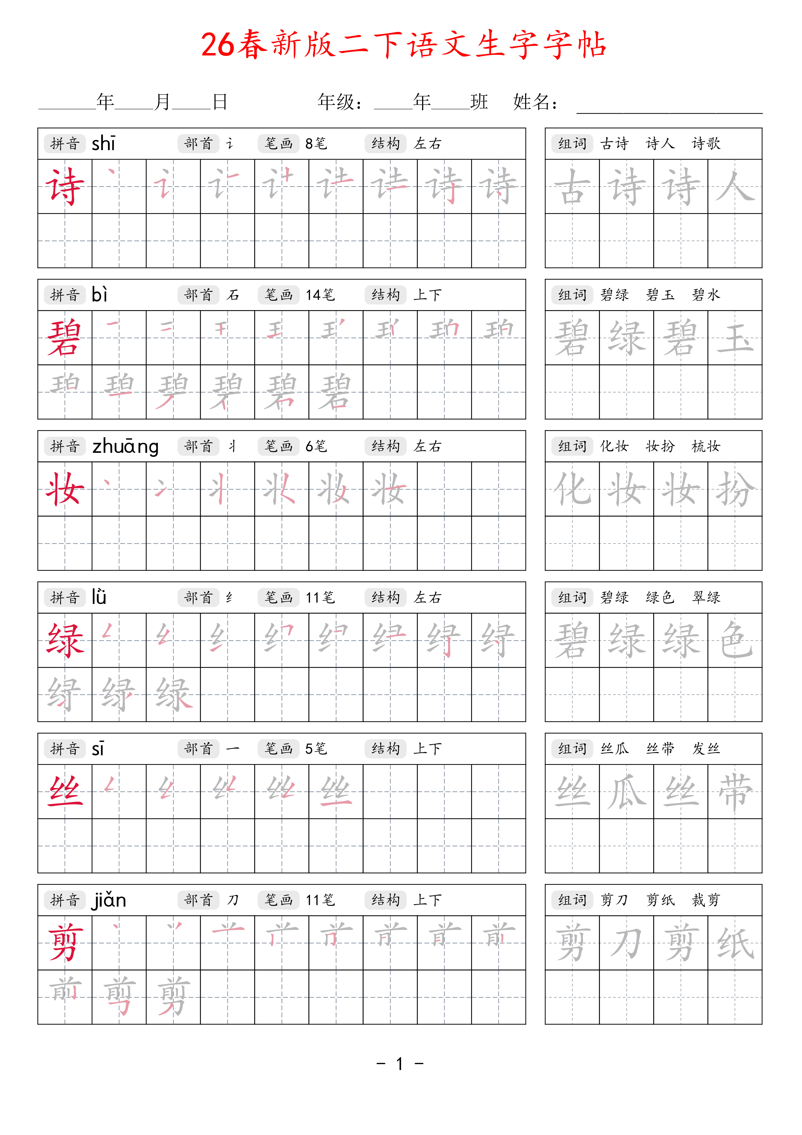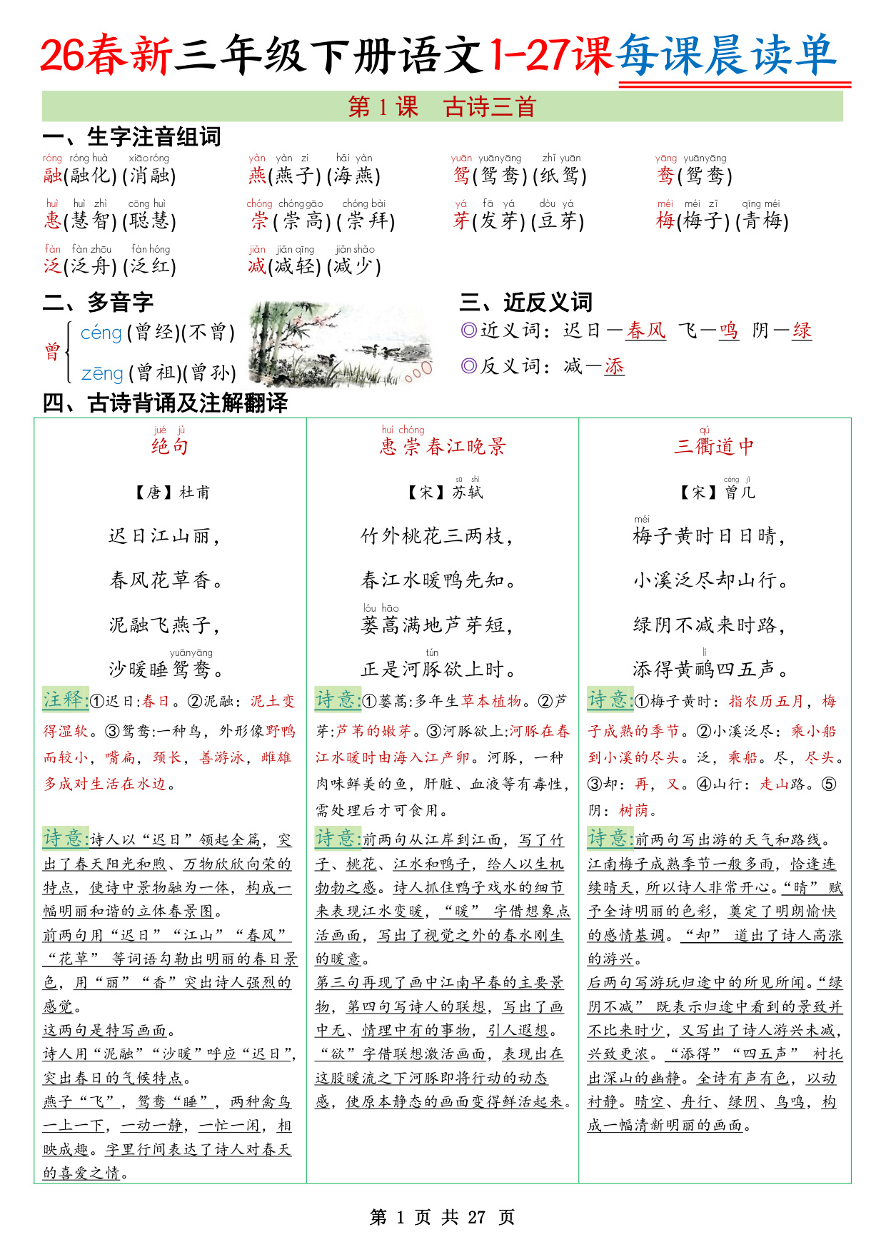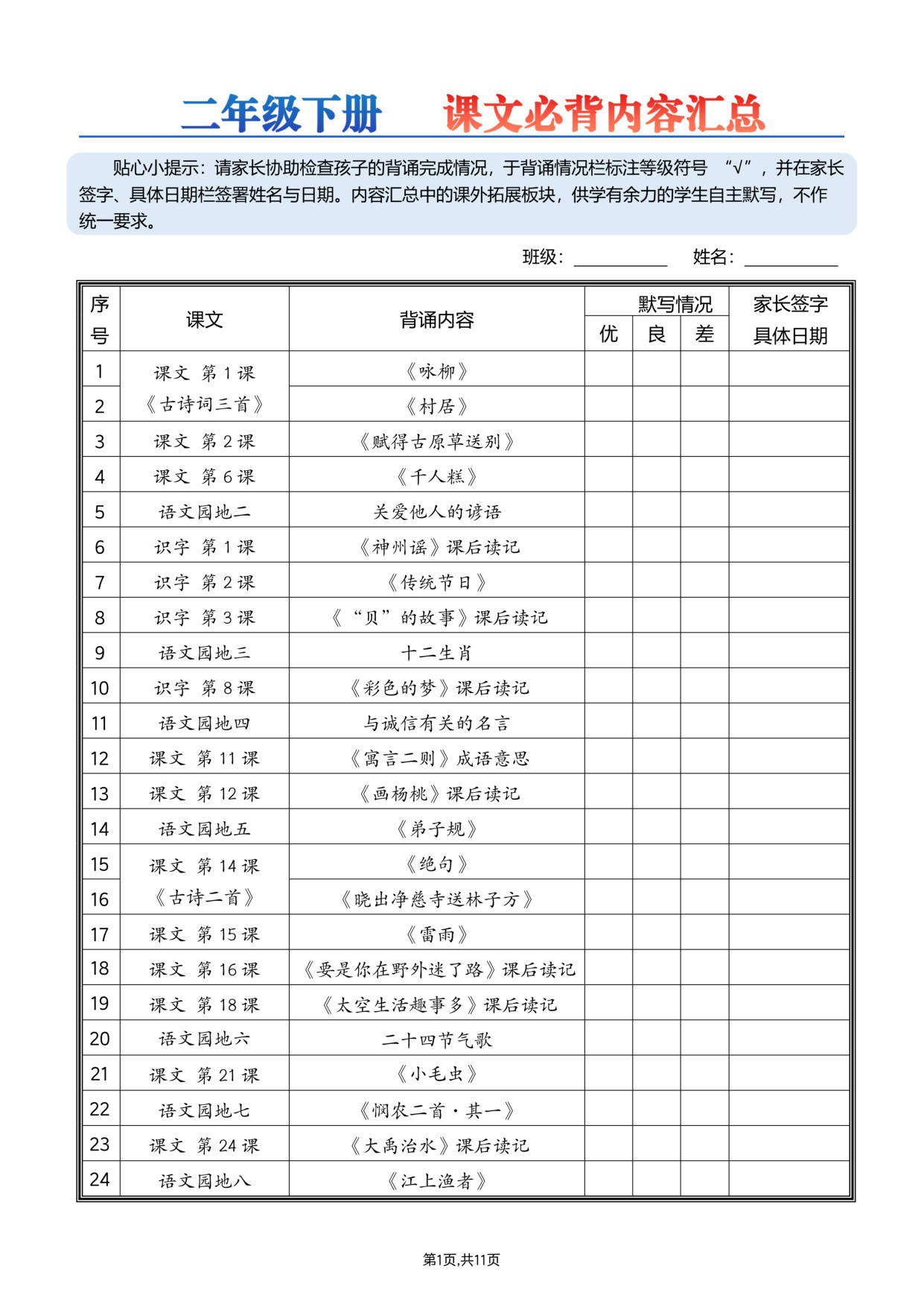 三年级(下)语文 【识字表+写字表+词语表】专项练